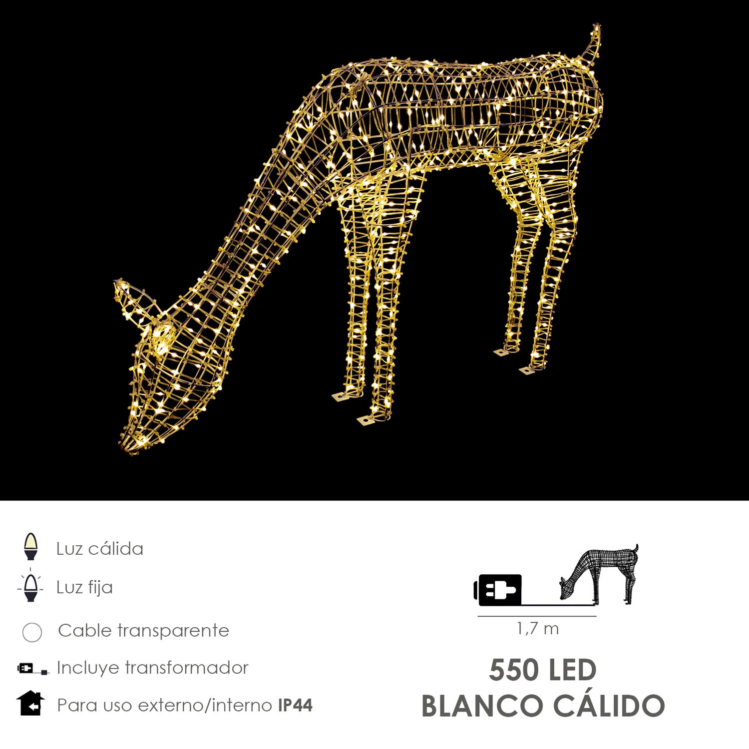 Adorno Luces Navidad Ciervo 3D 550 LEDs. Uso en Exteriores e Interiores Proteccion IP44 Altura 73 cm.
