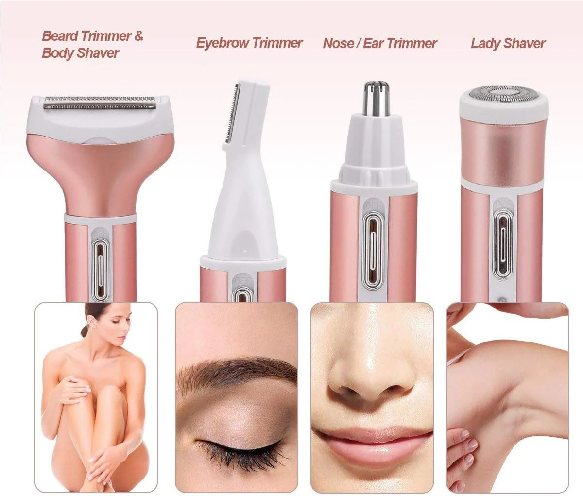 El uso de 4 cabezas de cuchillas es más higiénico y se puede usar para diferentes partes del cuerpo, como cejas, labios, axilas, manos, piernas y vello nasal.
