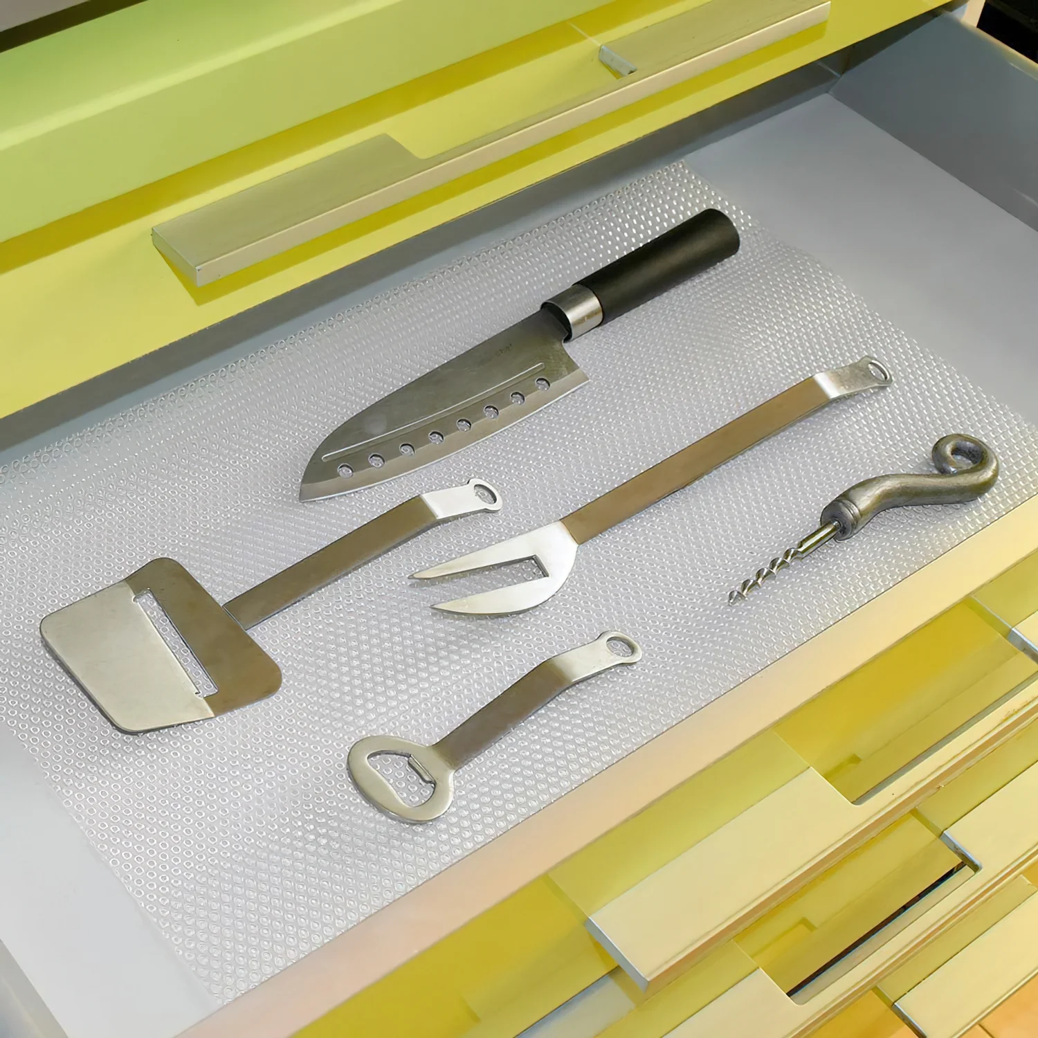 - Amortigüa los ruidos y protege cajones y baldas (lejas) de arañazos