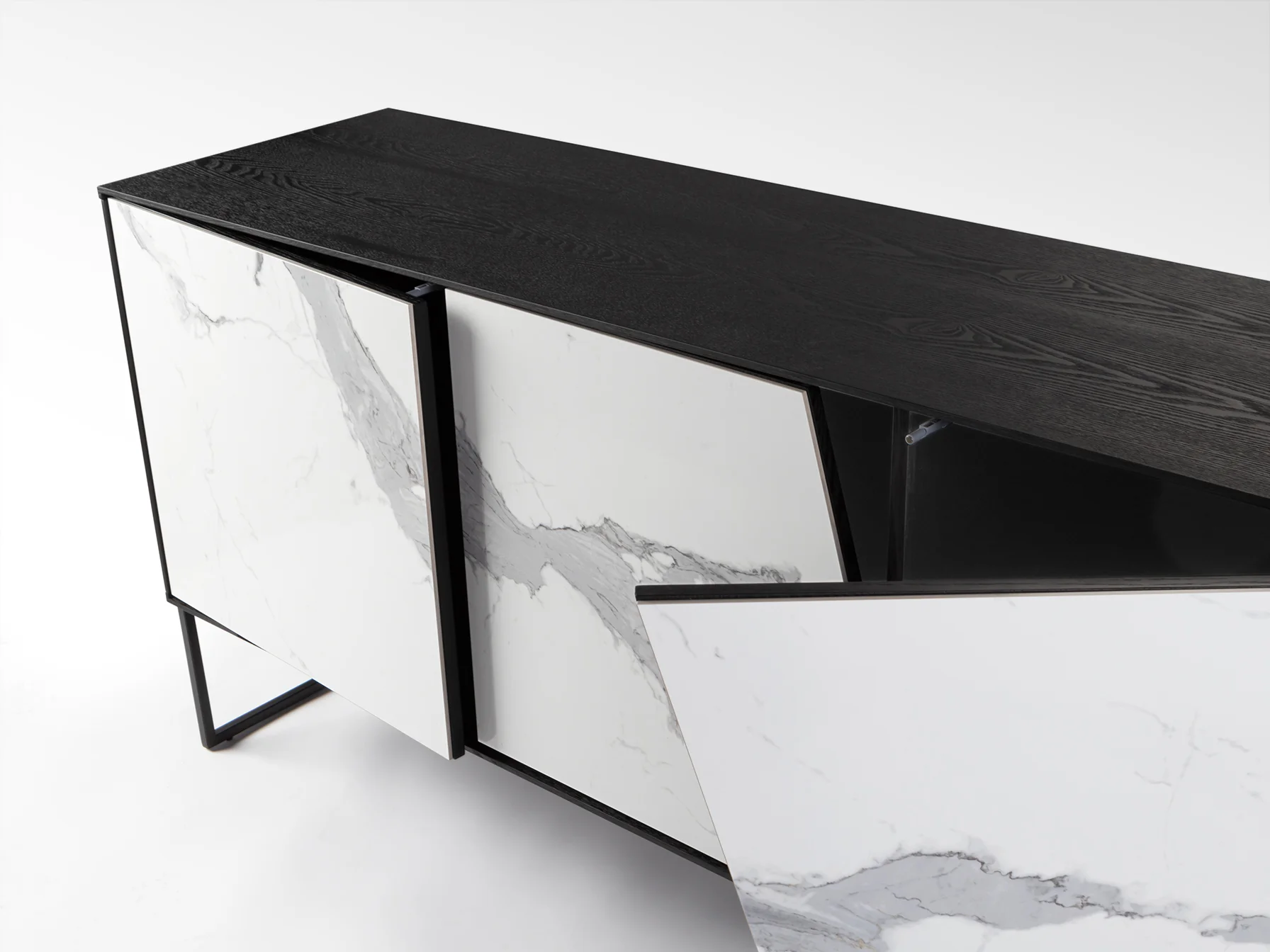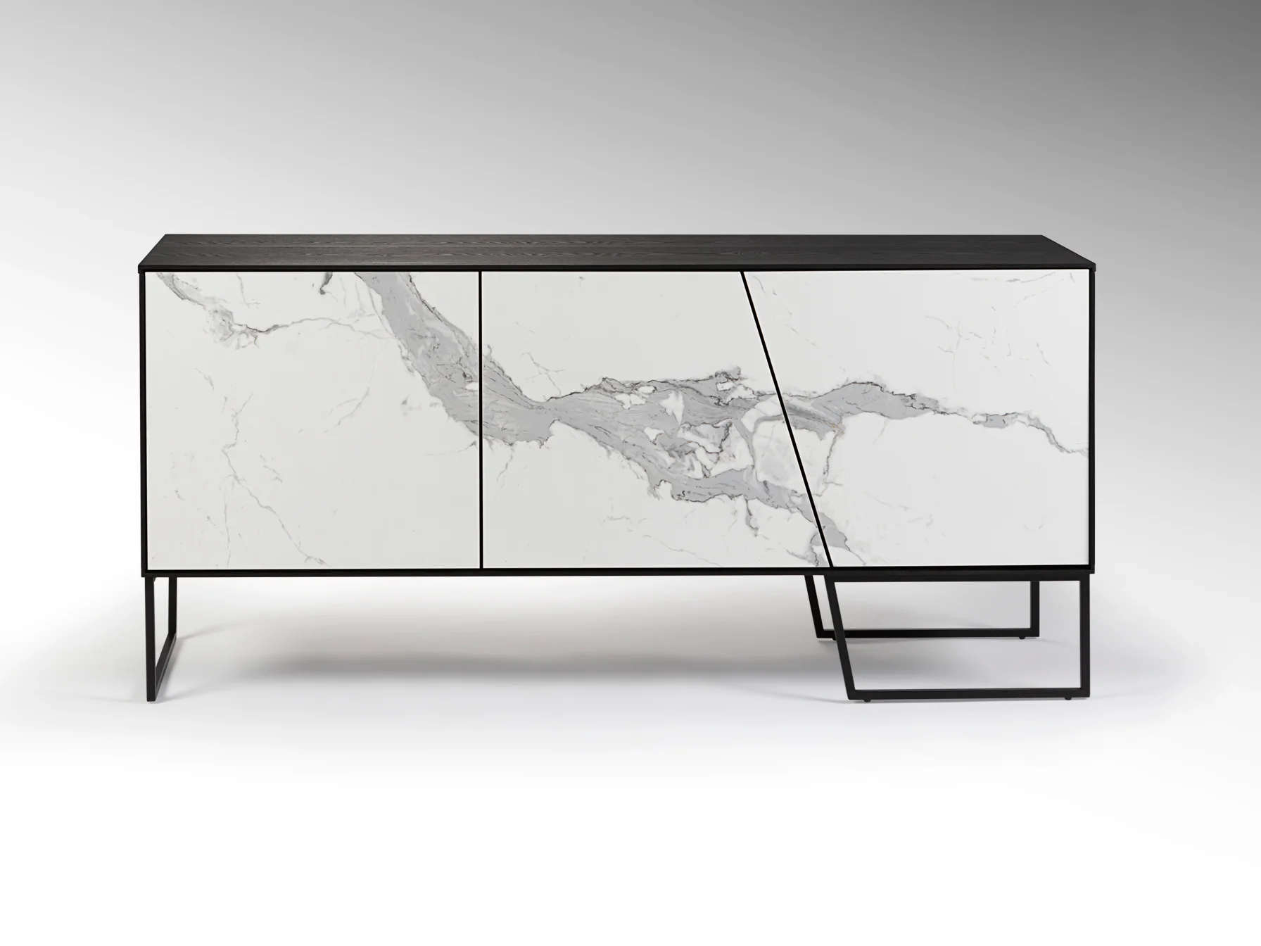 Descubre el aparador Kerala, una pieza excepcional de Schuller que combina funcionalidad y estilo. Realizado en DM con un sofisticado acabado en fresno negro, este aparador de tres puertas presenta frontales de porcelánico con un elegante acabado mármol blanco con veta gris. Su estructura inferior metálica en negro mate añade un toque de modernidad y contraste. Este aparador es una muestra del compromiso de Schuller con la calidad y el diseño. Su presencia imponente y su capacidad de almacenamiento lo convierten en una pieza clave para cualquier salón. Adquiere tu aparador Kerala en luzguru.com, tu tienda online de confianza. Schuller, la elección perfecta para un hogar con estilo.
