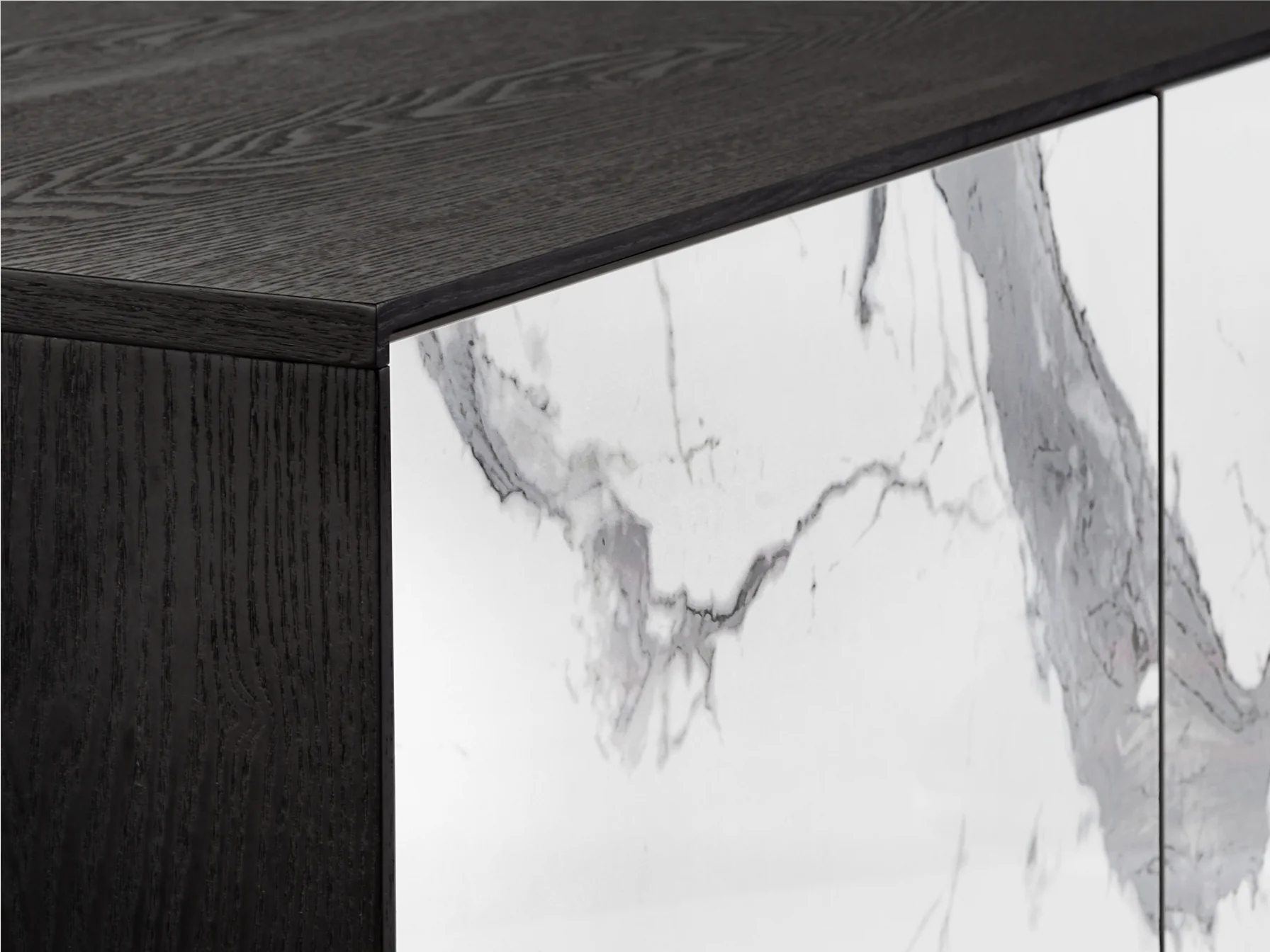 El aparador Schuller Kerala ofrece un amplio espacio de almacenamiento gracias a sus tres puertas, perfectas para guardar objetos decorativos, vajillas o cualquier elemento que desees mantener ordenado. La combinación del fresno negro con el mármol blanco crea un contraste visual que aporta un toque de elegancia y sofisticación a tu hogar. Schuller, sinónimo de calidad y buen gusto.