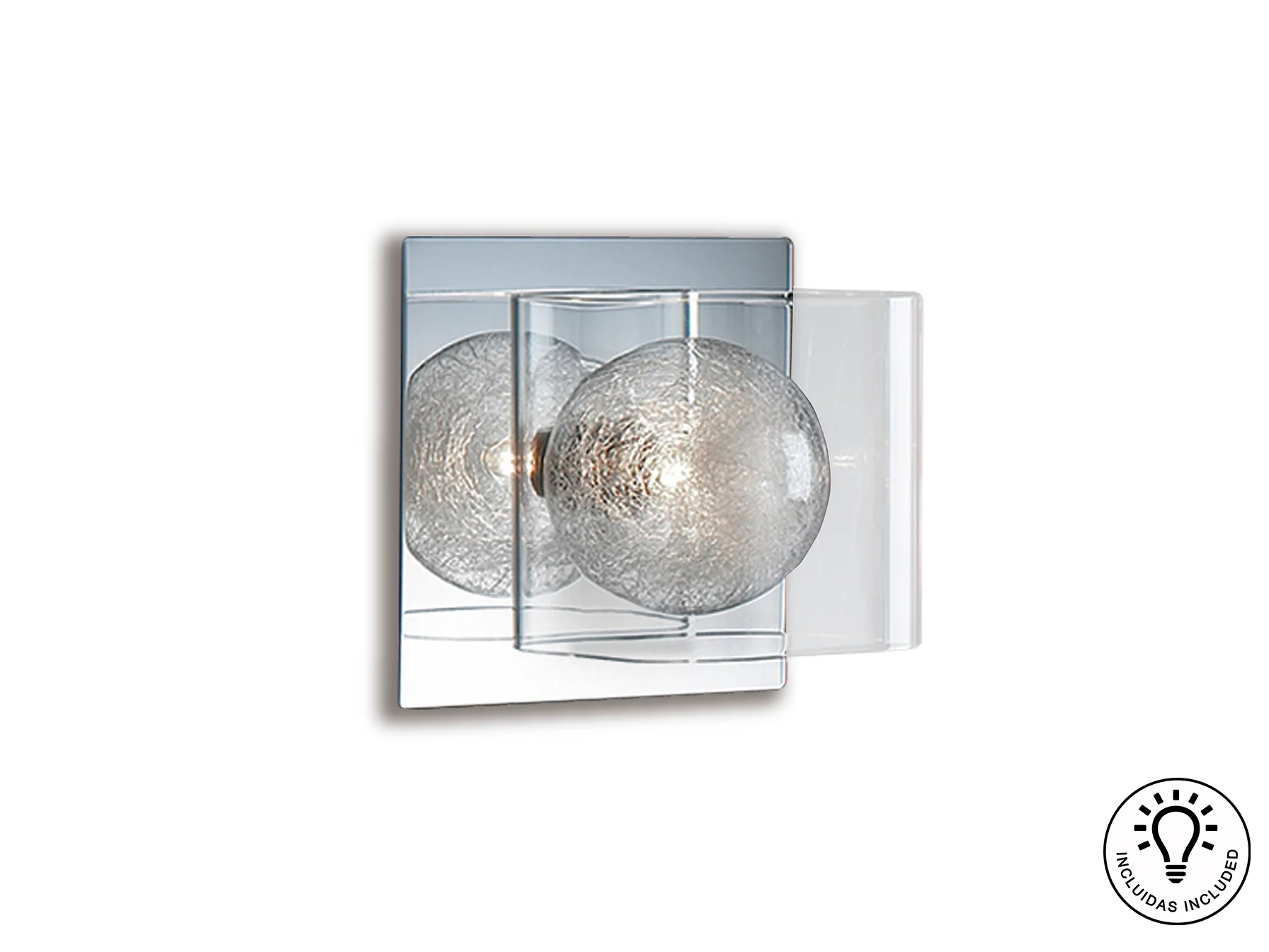El aplique está fabricado con metal acabado cromo y cristal moldeado. La calidad de los materiales garantiza su durabilidad y resistencia.