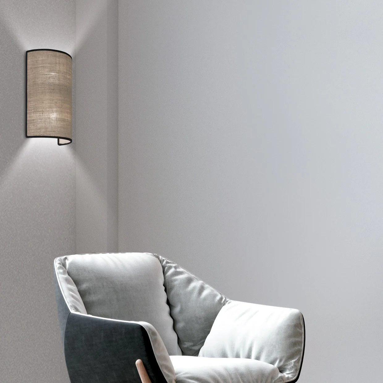 El aplique Dafne está fabricado con metal y tela de alta calidad, asegurando durabilidad y un acabado elegante. AJP / Alemar utiliza materiales cuidadosamente seleccionados para garantizar la calidad de sus productos.