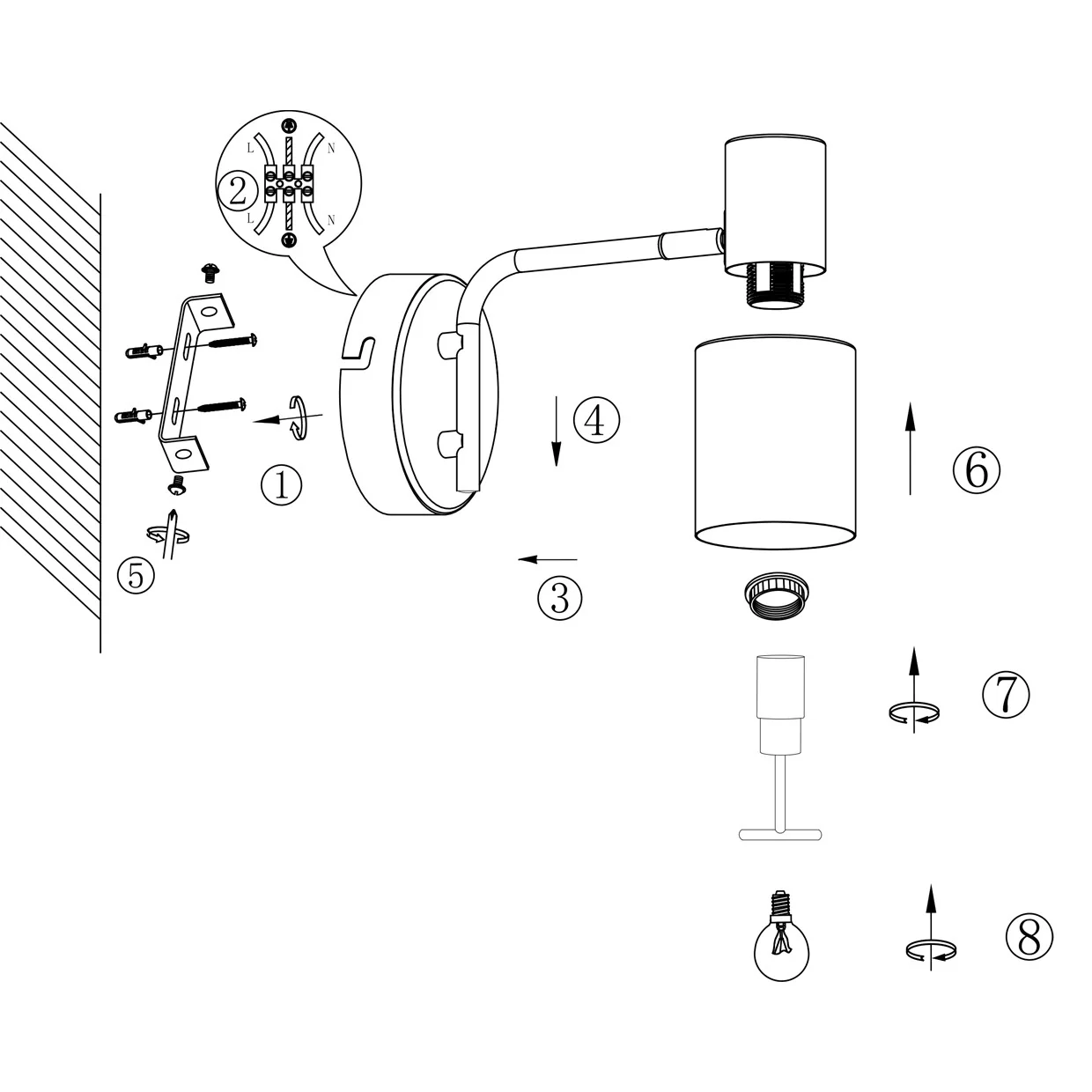 El aplique Maena utiliza bombillas E-14, con una potencia máxima de 40W. Se recomienda el uso de bombillas LED para mayor eficiencia energética.