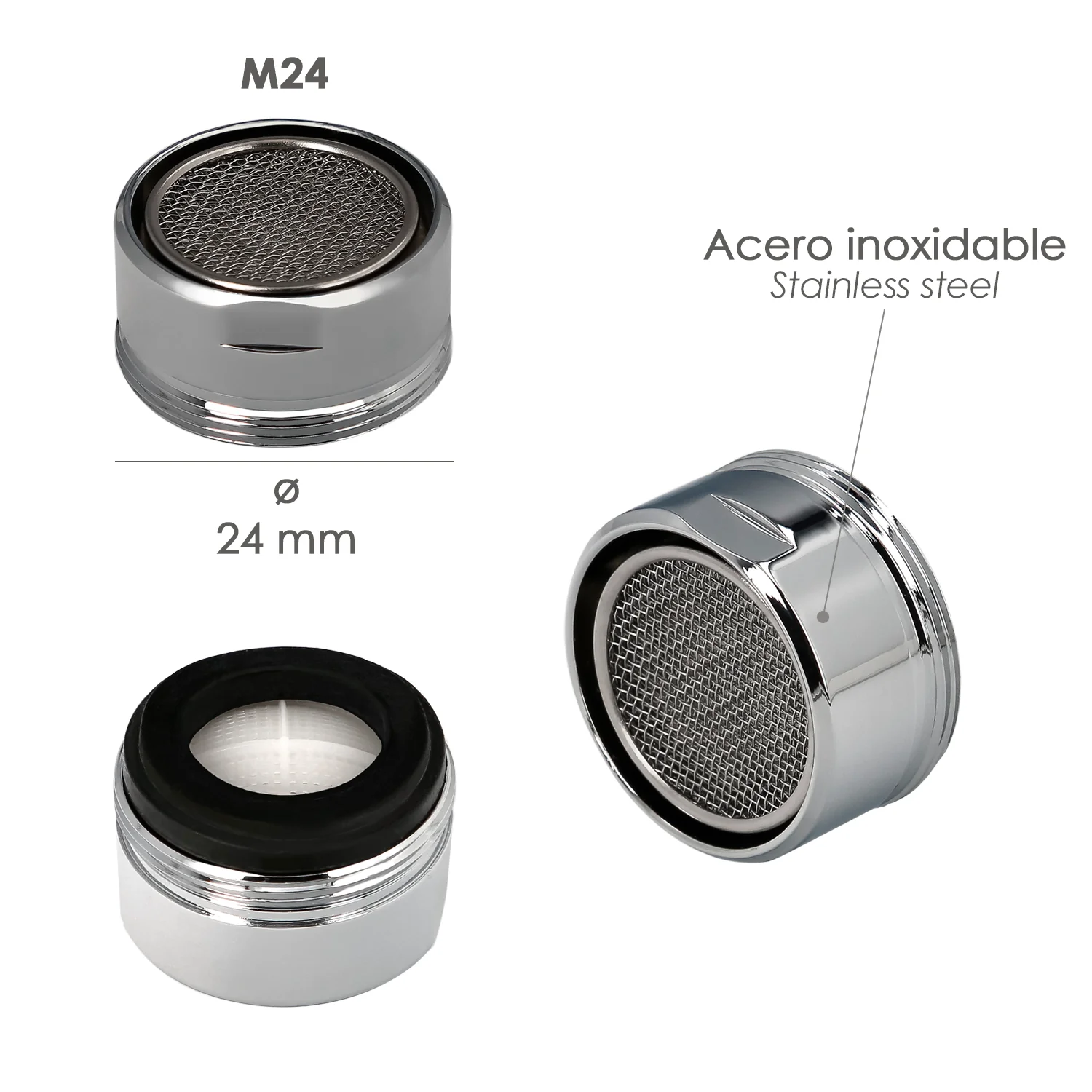 - Tamaño M24. Con este filtro aireador de agua limita el flujo de agua en los grifos, por lo que reduce el consumo de agua