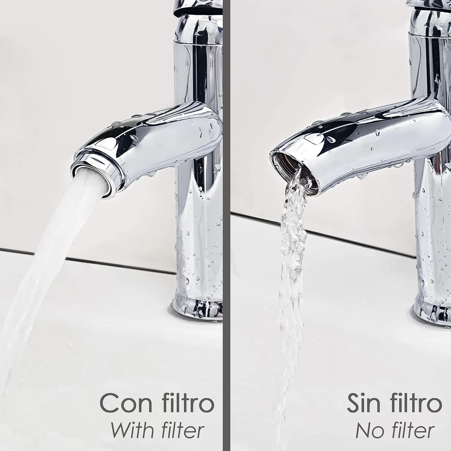 - Puede ser instalado en grifos y monomandos de cocina, grifos y monomandos del baño,