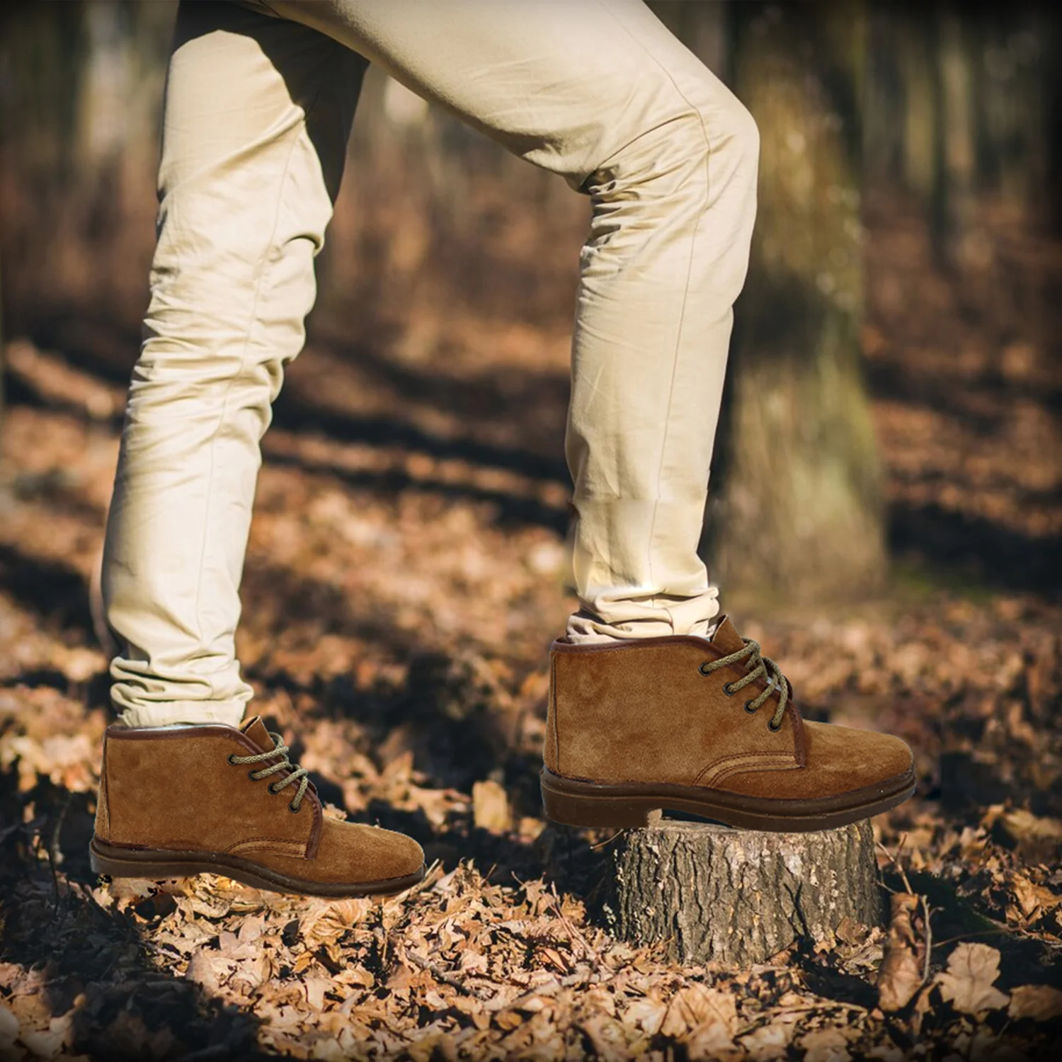 – Bota de serraje con suela marrón antideslizante.