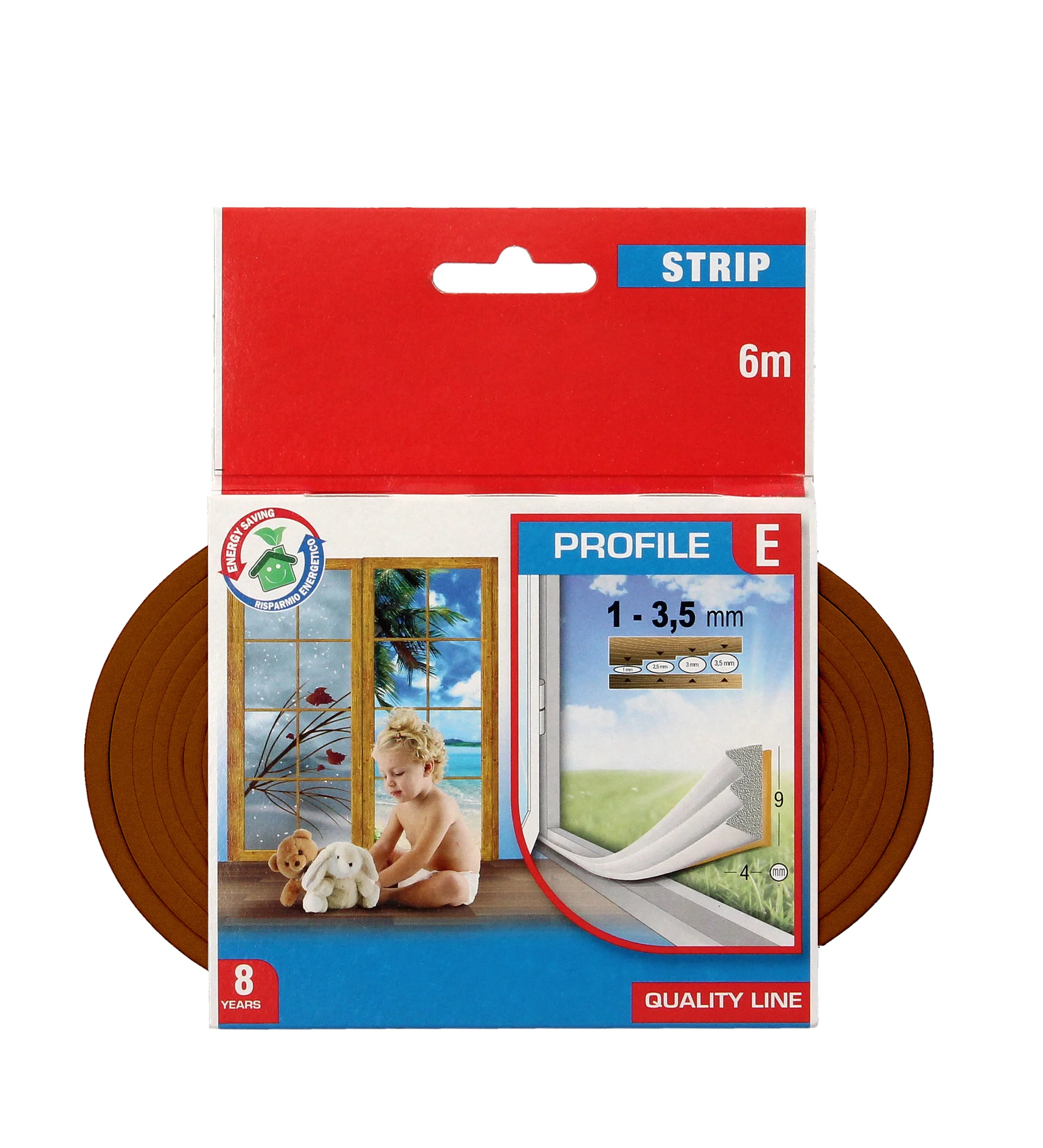 – Artículo también conocido como burlete de caucho, autoadhesivo para aislar ventanas y puertas, sella huecos, tira de sellado, burlete goma. aislante térmico, perfil en E, etc.