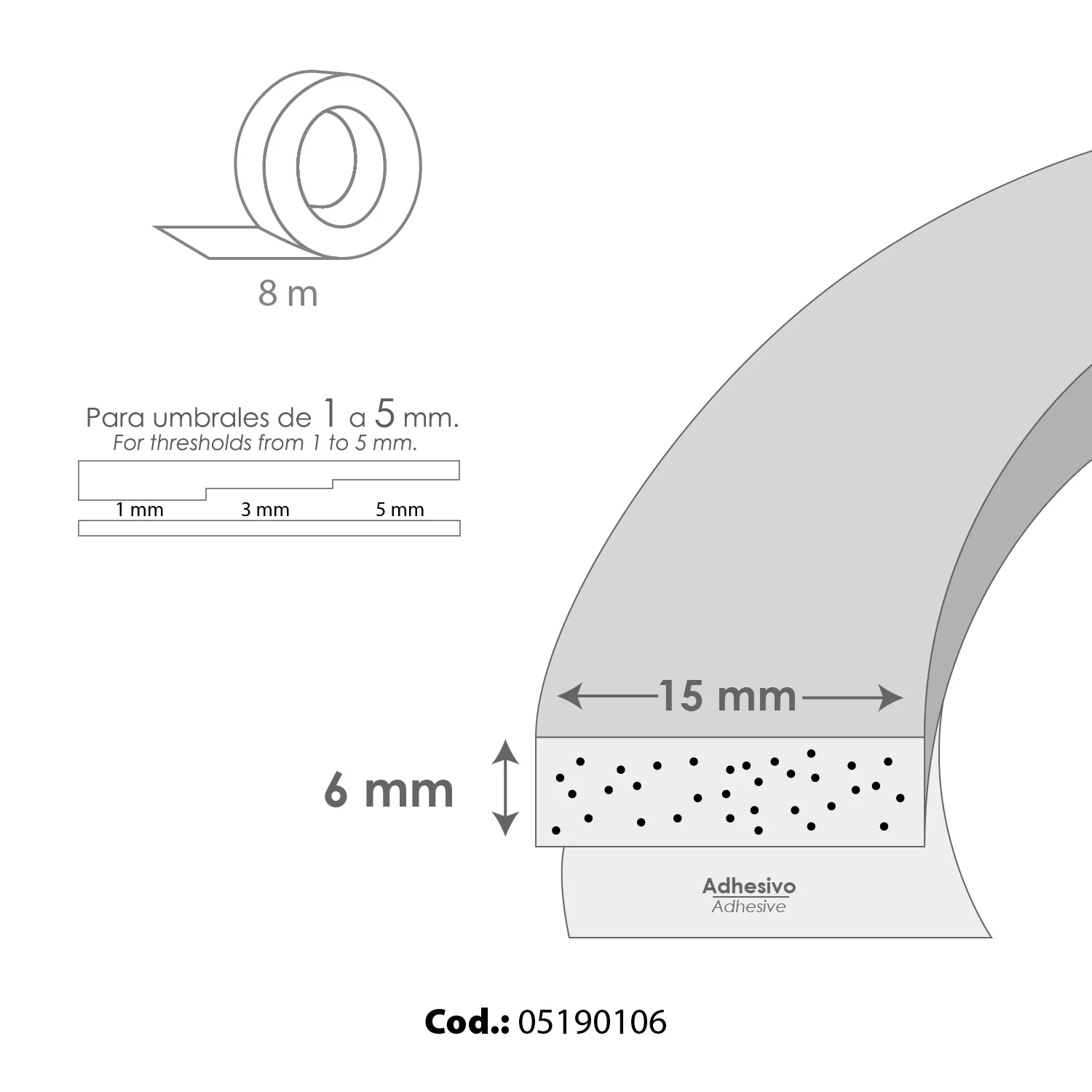 – Rollo: 8 metros x 15 mm.