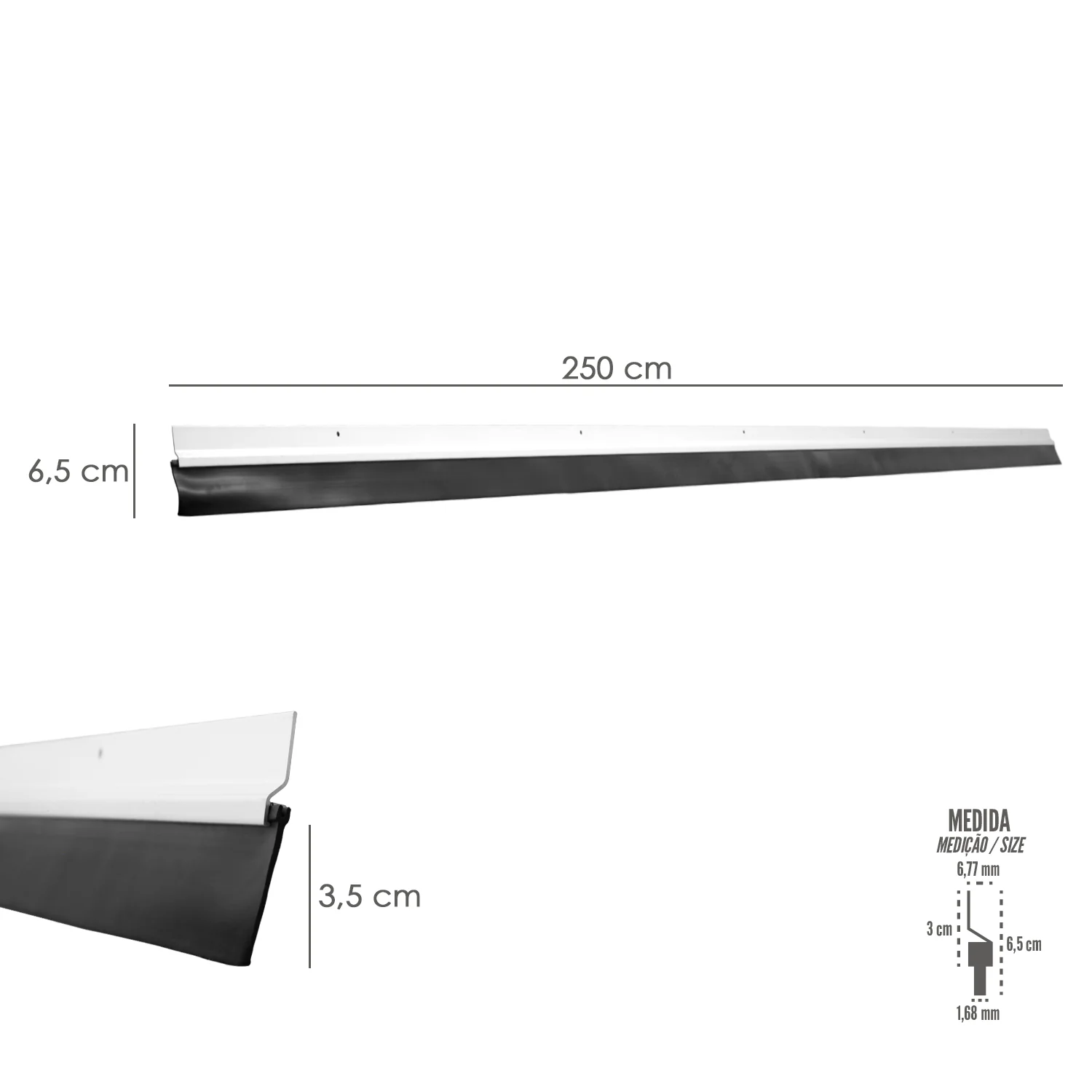 Burlete Para Puertas De Garaje Aluminio Blanco Con Goma 2,5 m. Perfil Bajo Cochera Cepillo De Puerta, Burlete Garaje