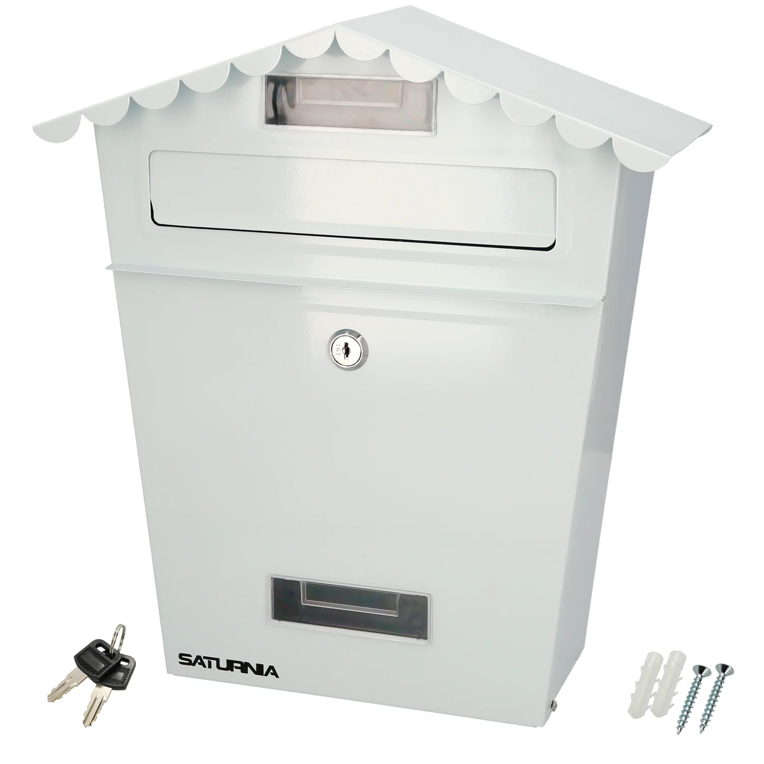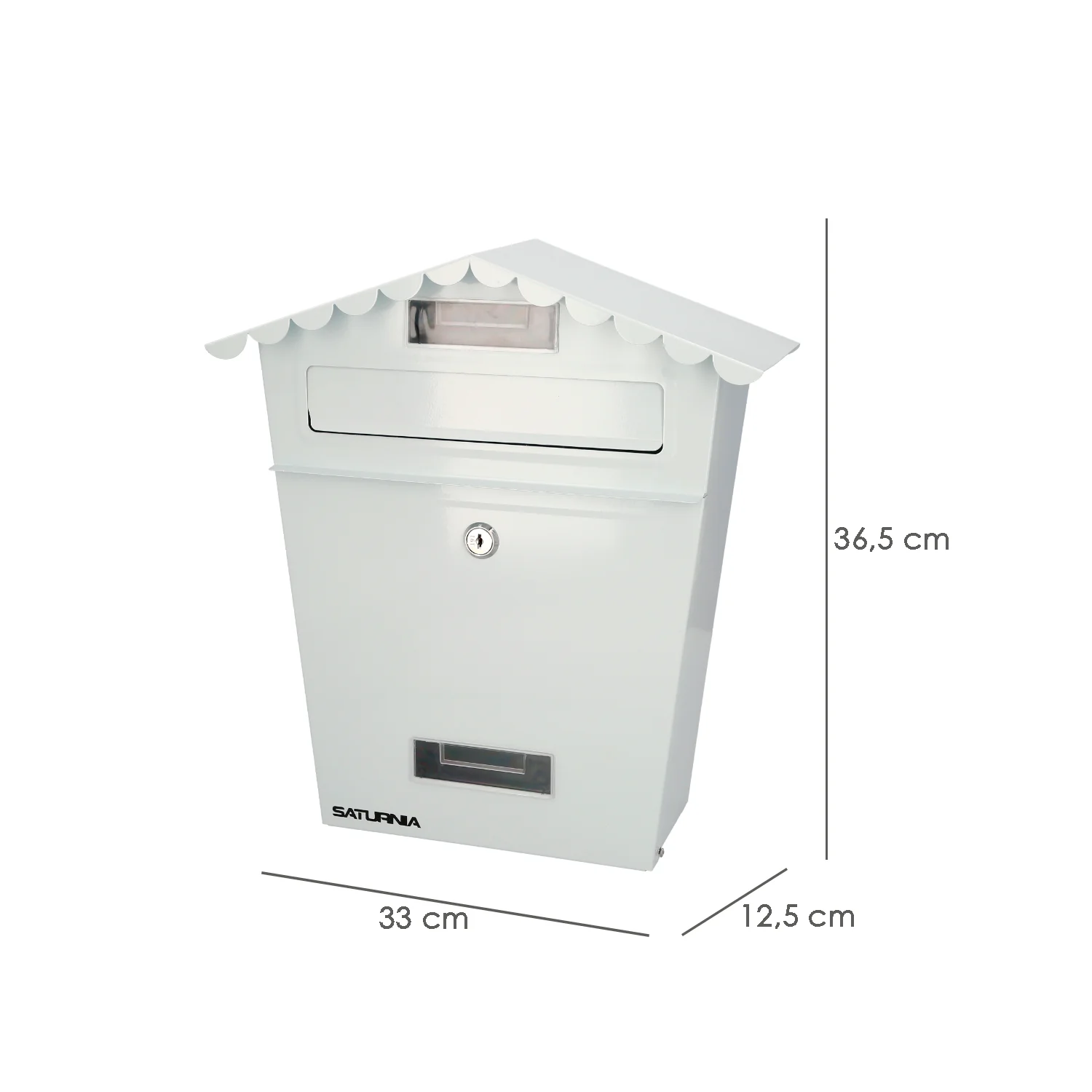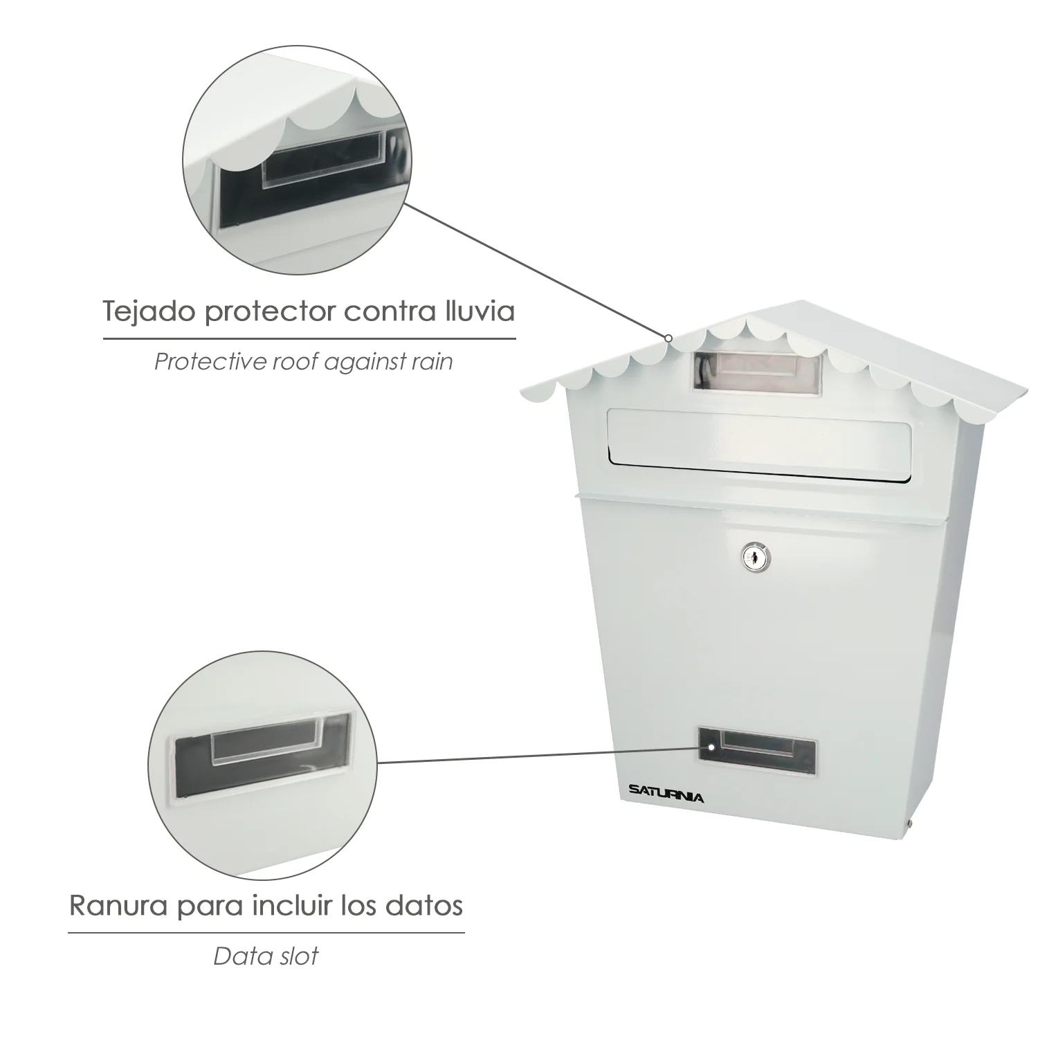 Buzon Exteriores House Blanco 330 x 125 x 365 (Alt.) mm. Con Tejado, Acero Pintado. Buzon Pared, Buzon Cartas, Buzon Correos