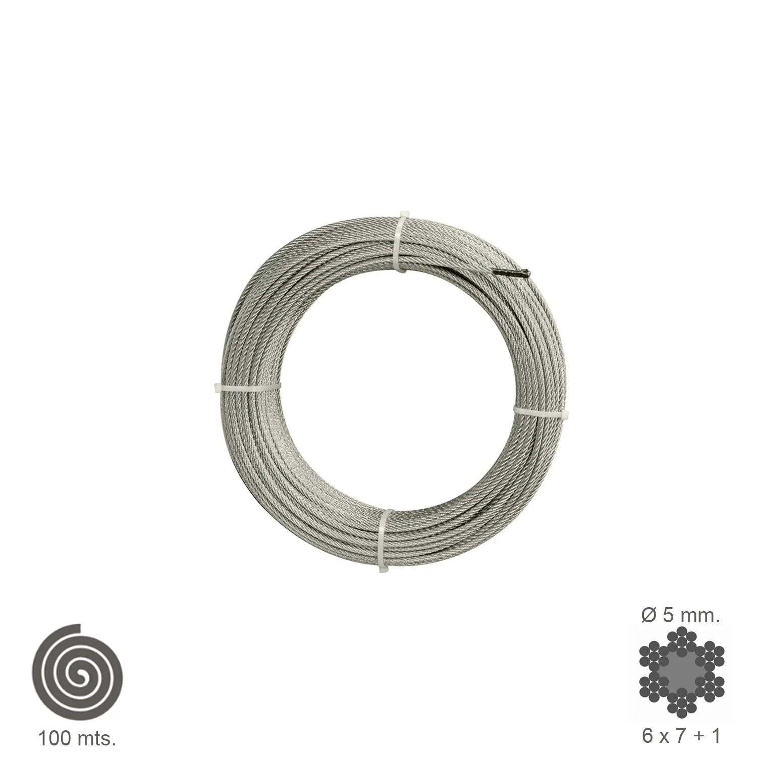 Cable Galvanizado 5 mm. (Rollo 100 Metros) No Elevacion
