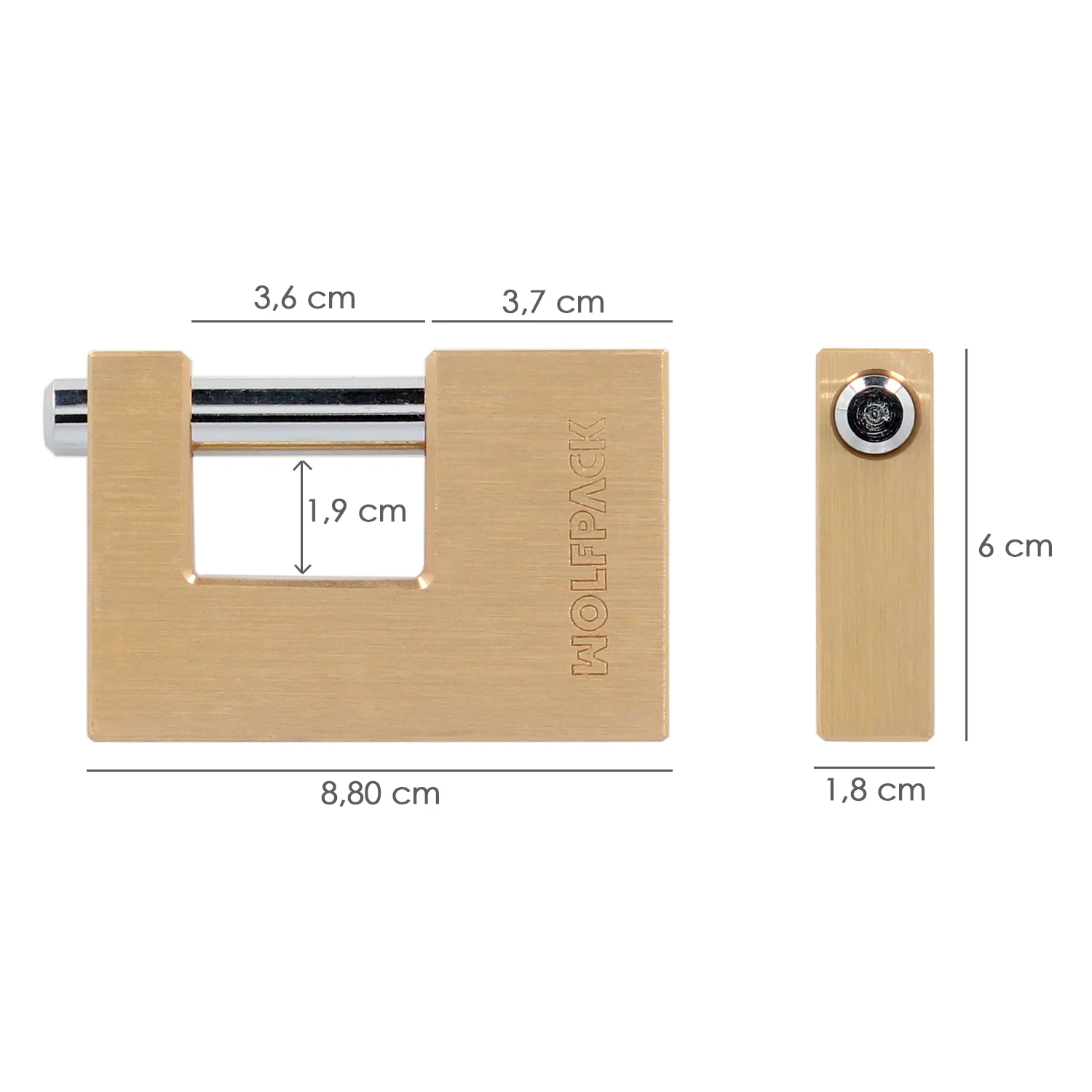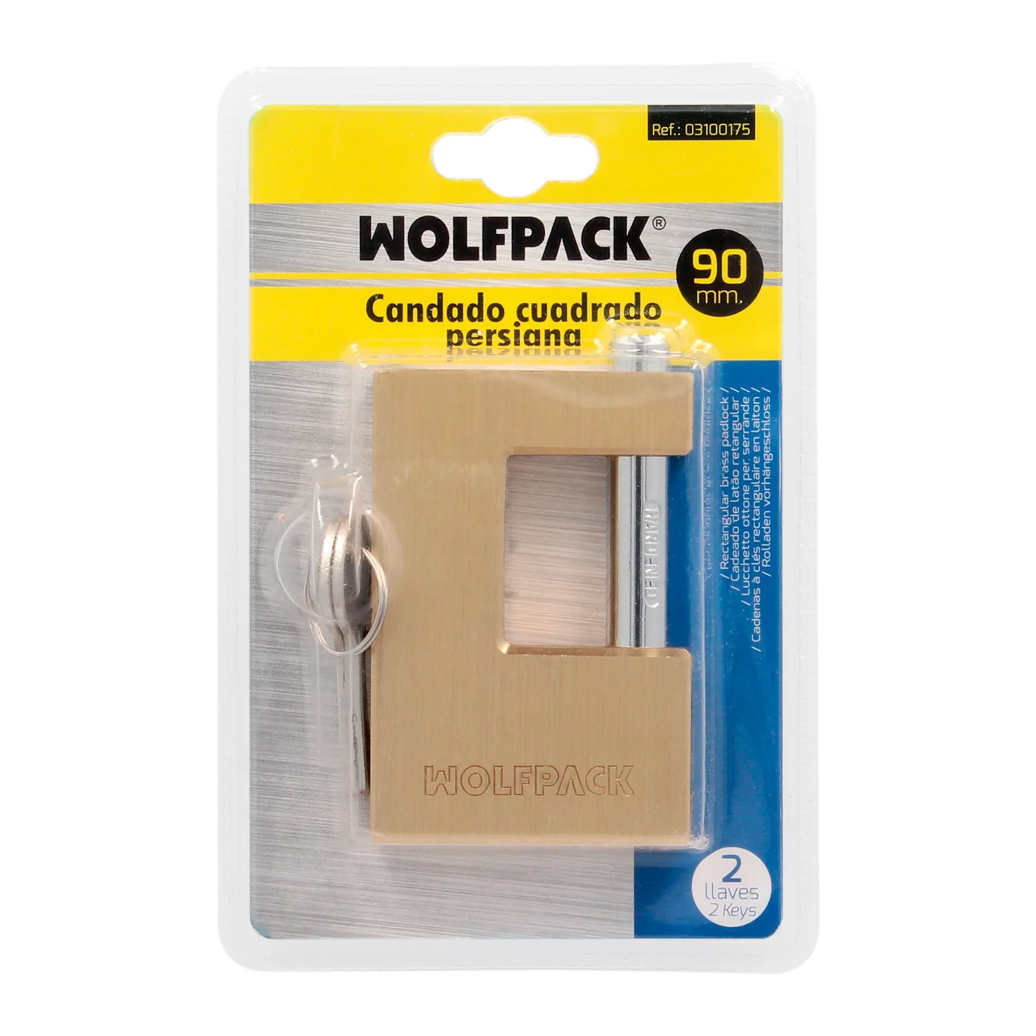 Candado Cuadrado Latón Persiana Ancho 70 mm. Alta Seguridad, Antirrobo Puertas, Contenedores, Trasteros, 2 Llaves