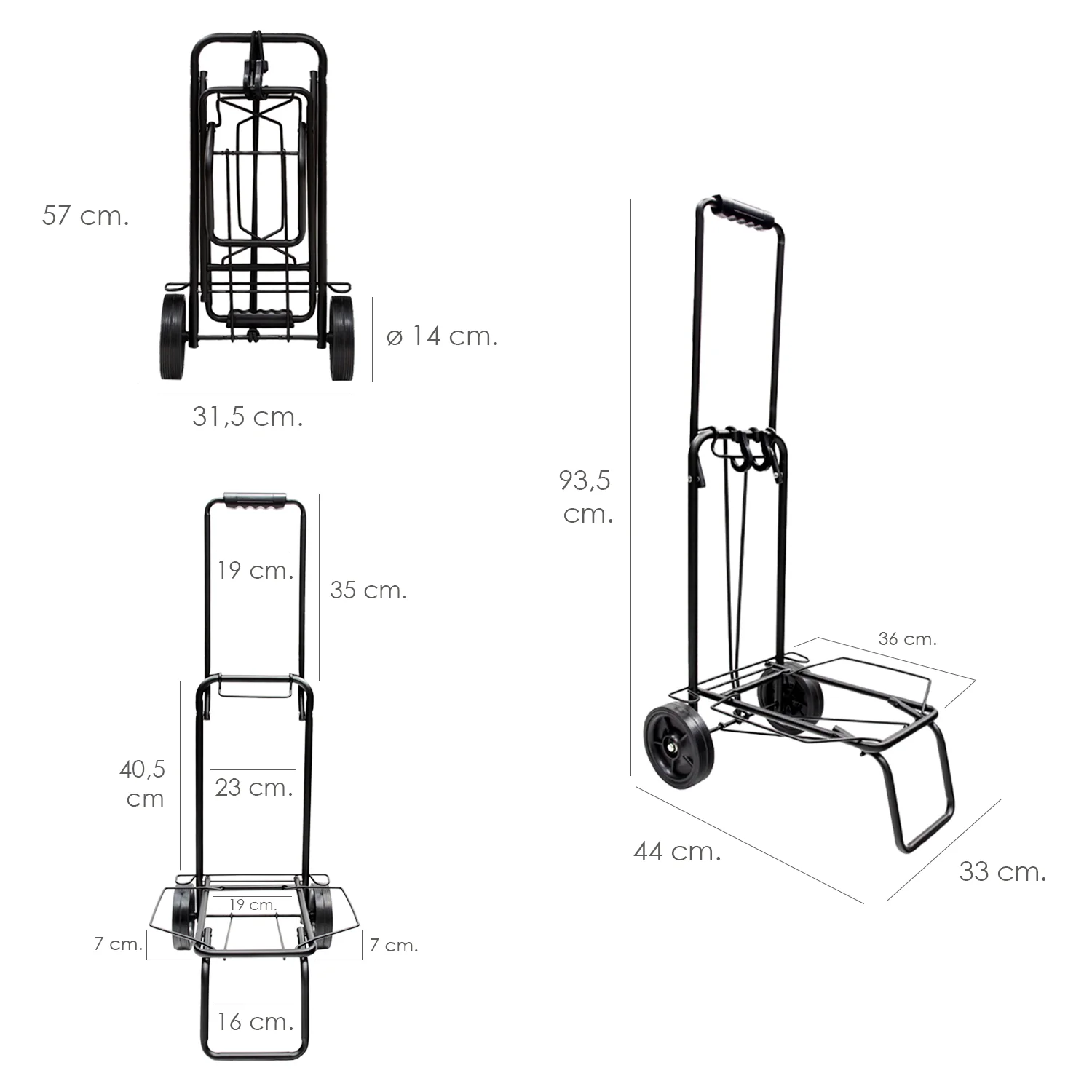 Carretilla Plegable Metalica De Carga – Porta Maletas Con Cuerda Elastica 93,5x33x44 cm. Carro De Transporte 50 Kg.