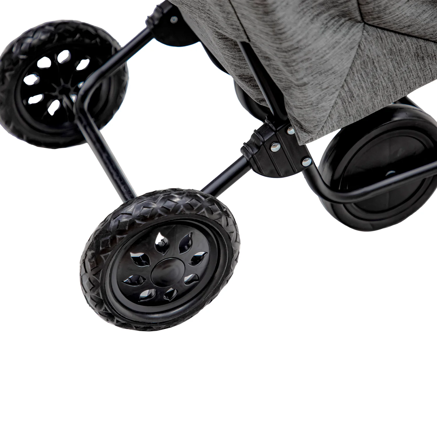 – Cuatro ruedas permiten dos posiciones: con cuatro ruedas se puede empujar el carrito y para tirar de él tenemos la posición con dos ruedas.