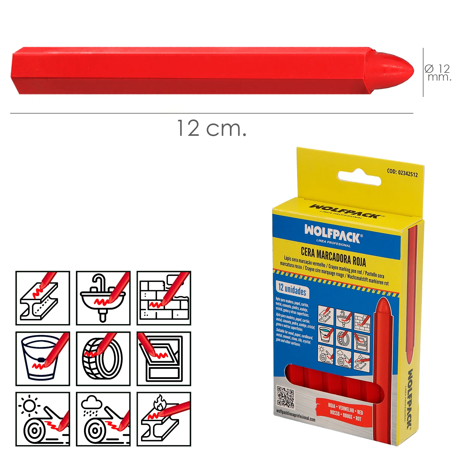 Cera Marcadora Roja (Caja 12 Piezas) Cera Trazadora, Marcador Industrial, Marcador Metal, Marcador Piedras