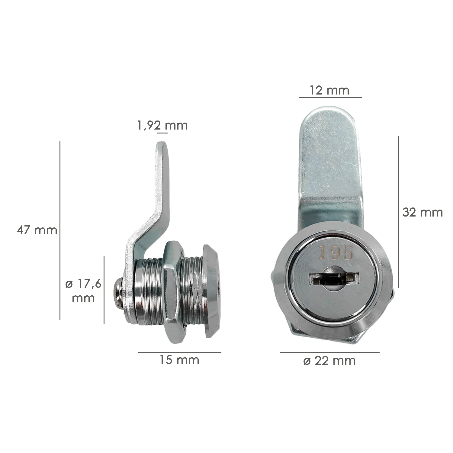 - La cerradura buzón universal de 1 pieza de 16 mm, con 2 llaves
