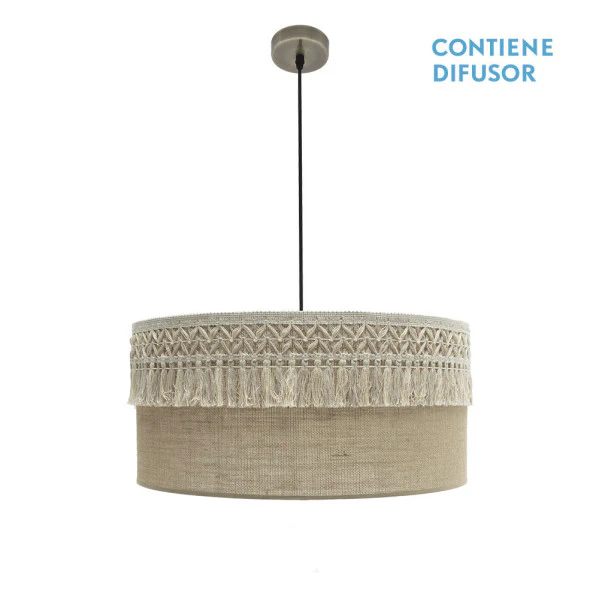 Colgante Ekaterina de Abrila transforma cualquier habitación en un rincón acogedor y elegante. Este colgante de diseño exclusivo con pasamanería en beis no solo ilumina con luz difusa general, sino que añade un toque vintage o rústico que resuelve la necesidad de una iluminación cálida y versátil. Imagina tus salones o dormitorios bañados en una luz suave que combina perfectamente con estilos modernos o clásicos, creando ambientes relajados sin esfuerzo. Integra palabras clave como ‘colgante de pasamanería beis’, ‘lámpara colgante textil para interiores’ y ‘iluminación doméstica exclusiva’. Descubre la calidad premium de Abrila, disponible en LUZGURU para elevar tu decoración.
