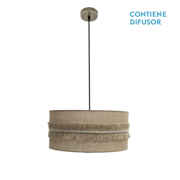 - Pantalla Cilíndrica de Tela de Saco con Flecos: Aporta un toque original y elegante, difudiendo la luz de manera suave para crear ambientes cálidos y acogedores en cualquier estancia.