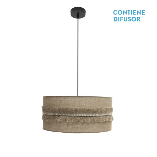 Colgante Kala de Abrila transforma cualquier habitación en un rincón acogedor y elegante. Este lámpara colgante con flecos en tela saco no solo proporciona luz difusa general, sino que añade un toque rústico y vintage que eleva la decoración de tu hogar. Imagina la calidez que aporta a dormitorios o salones, resolviendo la necesidad de iluminación suave y estilizada sin esfuerzo. Con su diseño original, ideal para estilos clásicos o vintage, disfruta de versatilidad en altura ajustable de 26 a 87 cm. Descubre la calidad de Abrila en LUZGURU, tu tienda de iluminación premium.