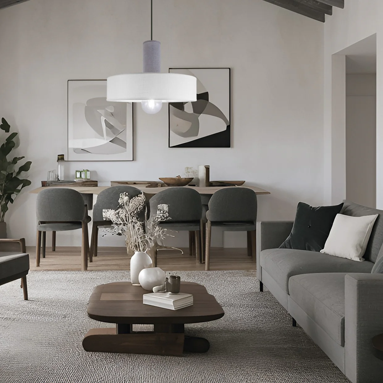 COLGANTE 1L KILIAN BLANCO/GRIS 1 X 60W E-27 – 40CM | AJP / Alemar – 11772