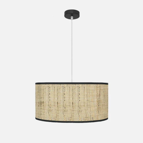 Colgante Natasha 2xE27 de diseño rústico y pantalla en cañizo natural transforma cualquier espacio en un rincón acogedor y moderno. Imagina la calidez que aporta a tu comedor o dormitorio, con su luz difusa general que invita al descanso y resalta la decoración sin esfuerzo. Su estructura regulable en altura de 42 a 105 cm se adapta perfectamente a techos estándar, mientras el armazón negro añade un toque elegante y versátil. Ideal para lámparas colgantes interiores que combinan estilo natural con funcionalidad, este colgante rústico cañizo resuelve la necesidad de iluminación suave en salones o centros de trabajo, creando ambientes relajados en minutos. Descubre la calidad premium de Abrila, disponible en LUZGURU para elevar tu hogar con luz auténtica.