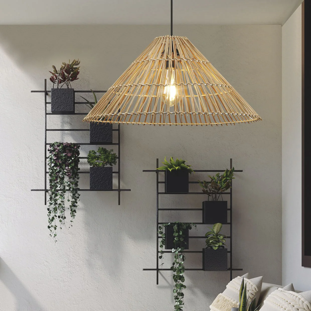 Crea un ambiente cálido, acogedor y sofisticado gracias a su diseño y al material de ratán.