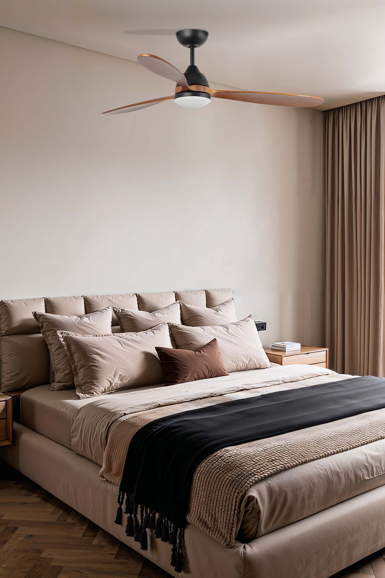 - Motor DC Silencioso: Máxima eficiencia y mínimo ruido, ideal para dormitorios y salones.