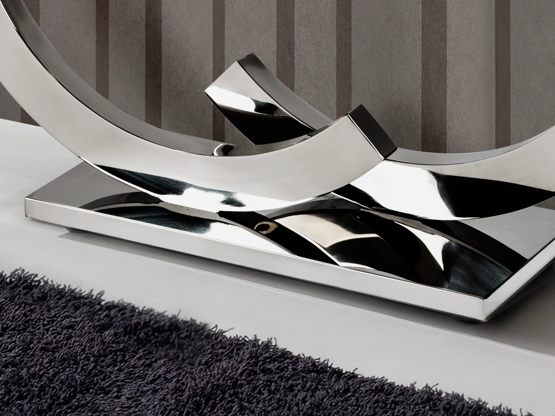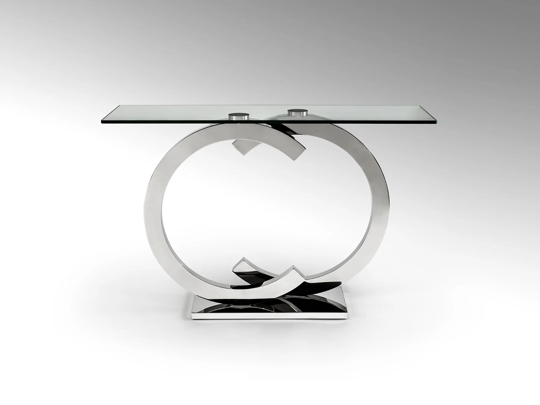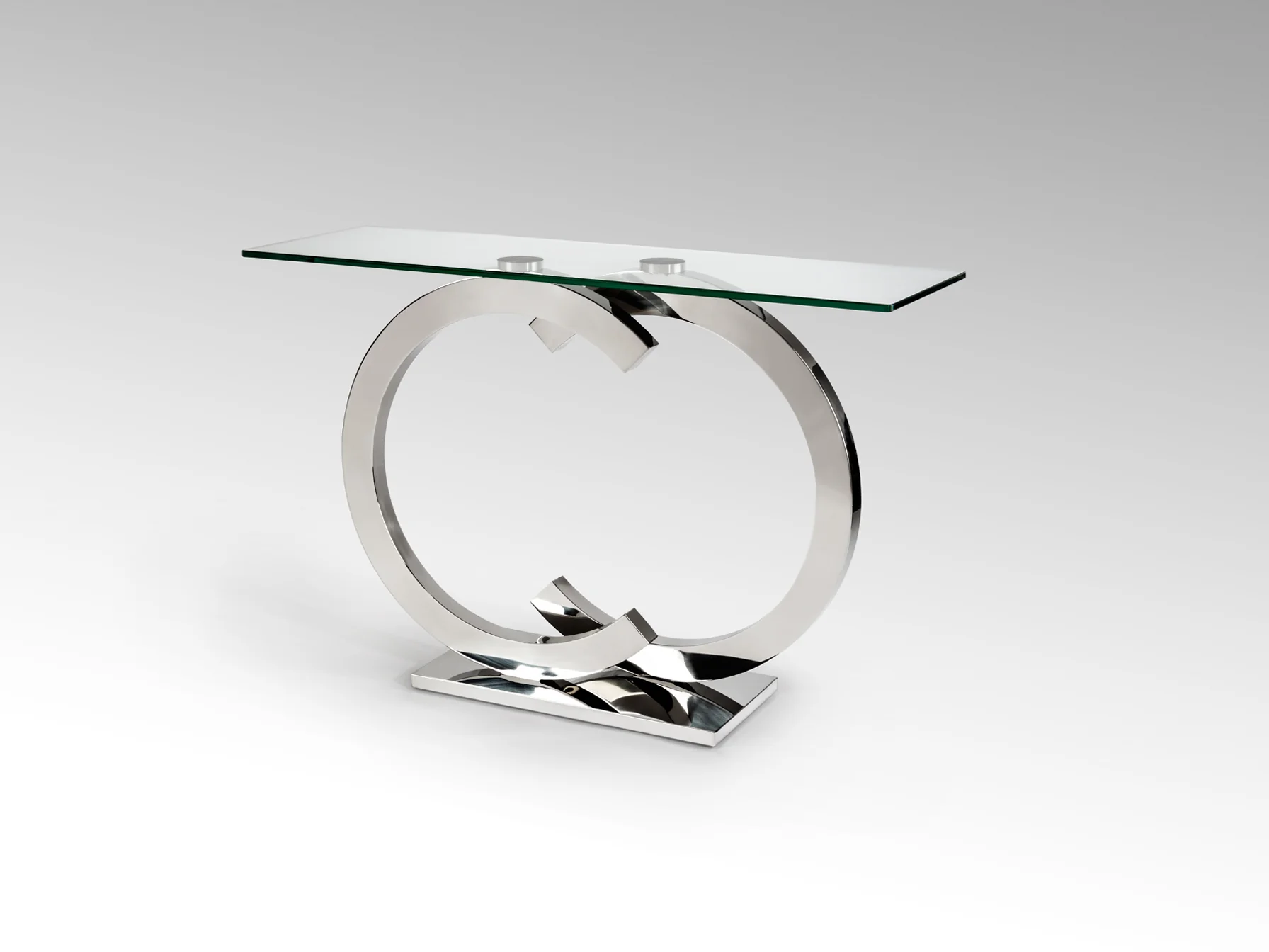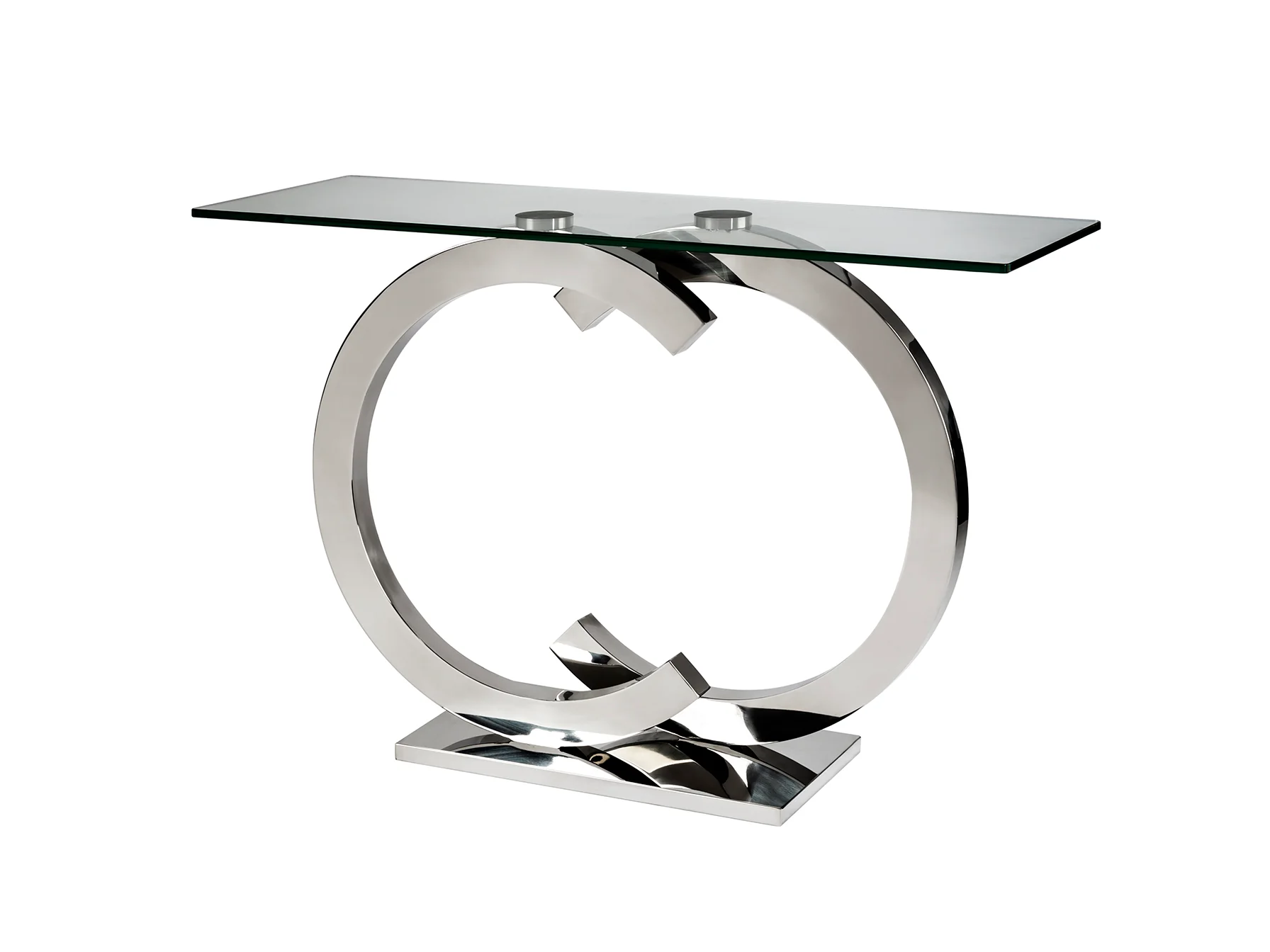 La consola Casandra destaca por su robustez y elegancia. La estructura de acero inoxidable pulido a alto brillo ofrece una base sólida y duradera, mientras que la tapa de cristal de seguridad de 12 mm de grosor, con canto pulido, aporta un toque de sofisticación y seguridad. Su diseño minimalista se adapta a cualquier estilo decorativo, desde los más clásicos hasta los más vanguardistas. Esta consola no solo es bonita, sino también funcional, ofreciendo una superficie amplia y resistente para colocar objetos decorativos, libros o incluso una lámpara.