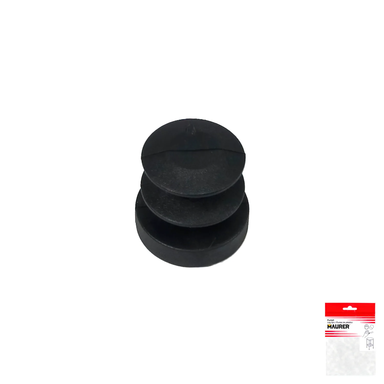 Contera Redonda Interior Negra 16mm. Blister 4 piezas.