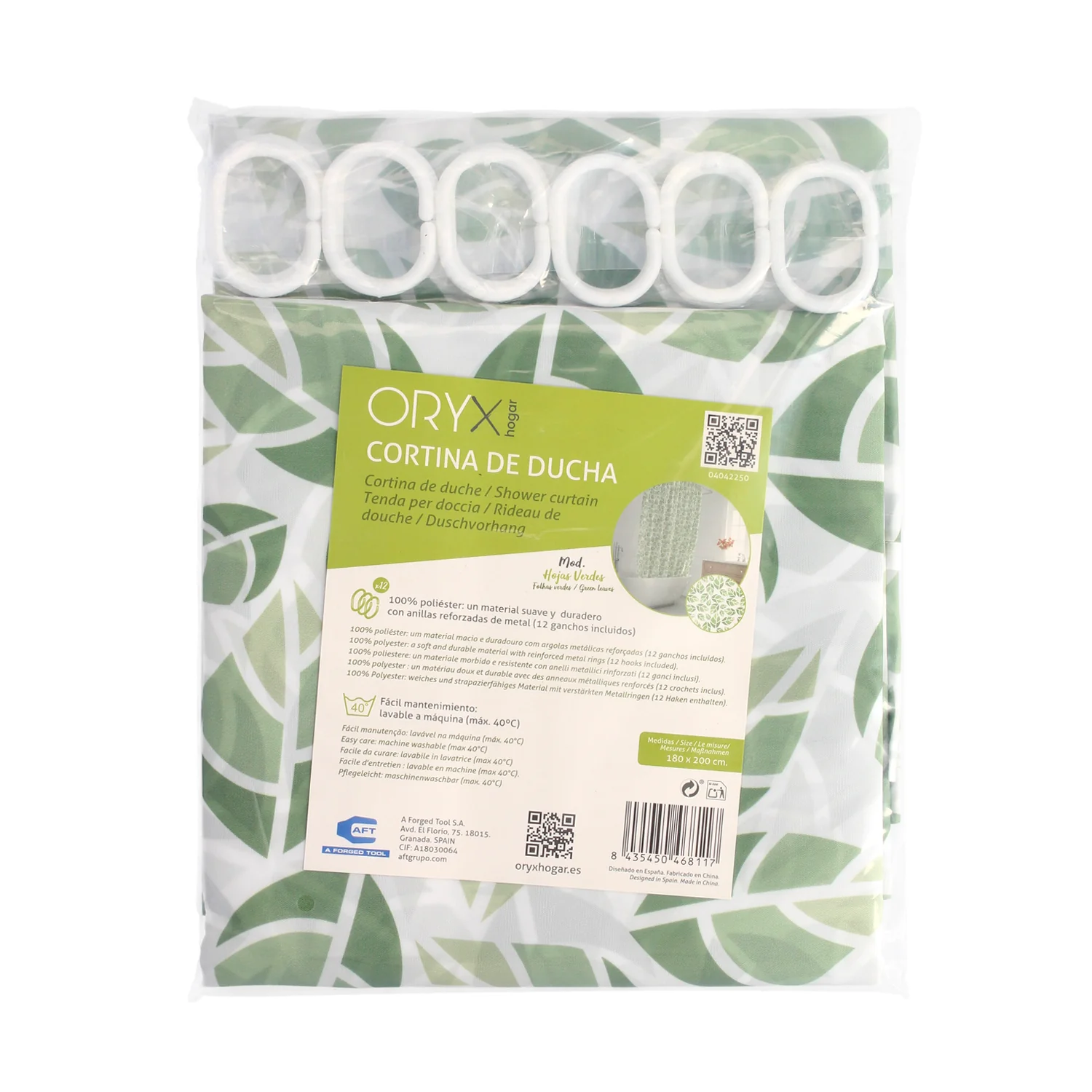 Cortina Ducha Hojas Verdes de la marca ORYX.