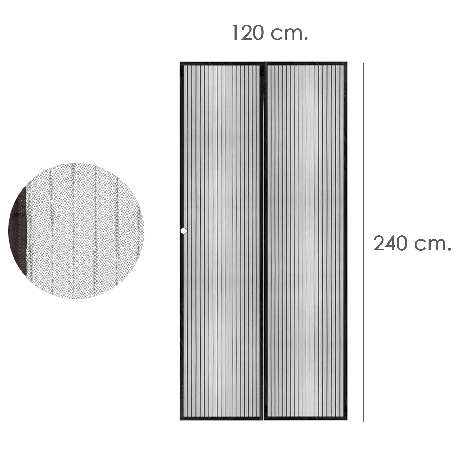 Cortina Mosquitera Para Puertas Con Cierre Central Magnetico Automatico 120 x 240 (Alt.) cm. Color Negro.