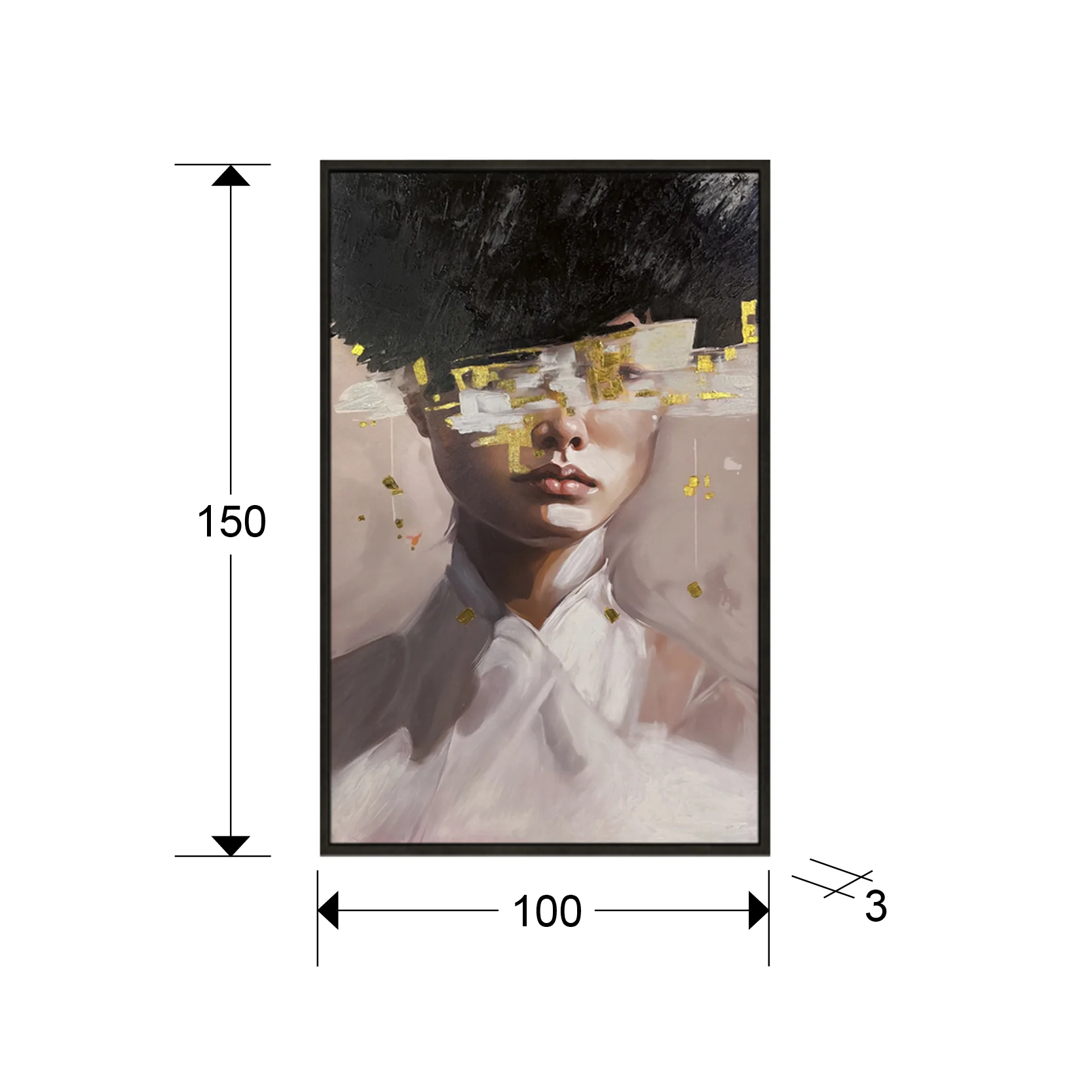El cuadro Ella destaca por su cuidada elaboración artesanal. La pintura al óleo sobre lienzo ofrece una textura rica y vibrante, mientras que el bastidor de madera garantiza la durabilidad y estabilidad de la obra. El marco de poliestireno negro complementa a la perfección el diseño, aportando un toque de elegancia y sofisticación. Su tamaño generoso (100×150 cm) lo convierte en una pieza ideal para decorar paredes amplias y crear un impacto visual notable.