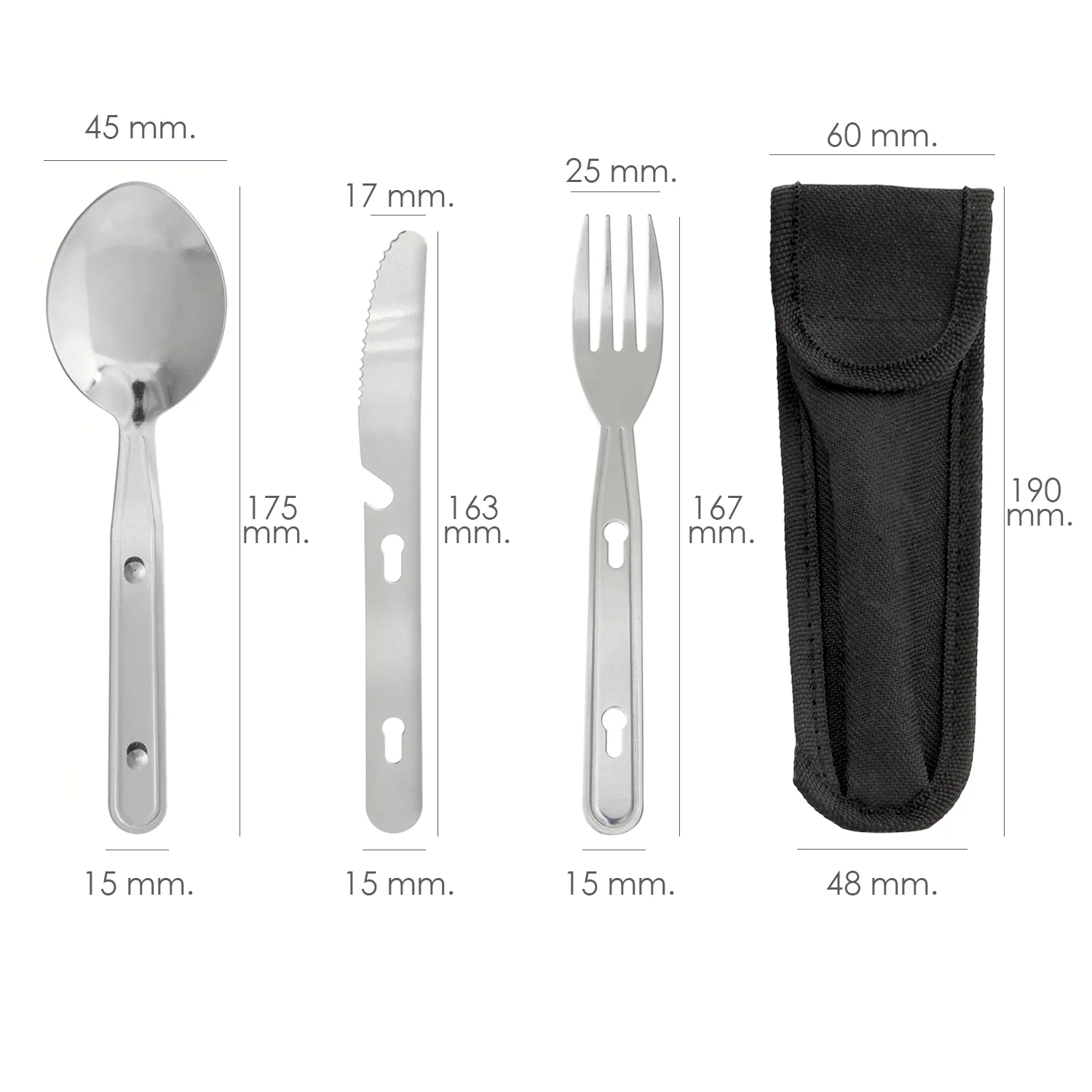 Cubiertos Camping Acero Inoxidable 3 Piezas Con Funda Nylon