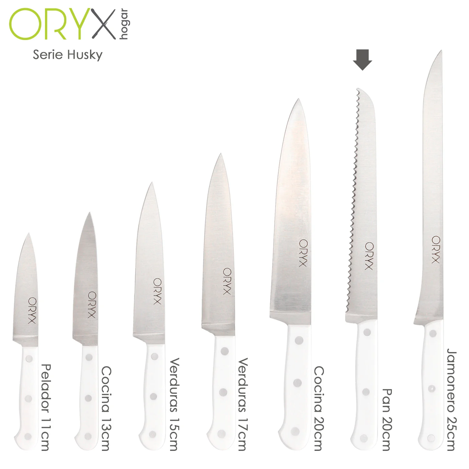 Cuchillo Husky Panero 21 cm. Hoja Acero Inoxidable, Cuchillo Pan , Cuchillo Cortar Pan Mango Ergonomico Blanco