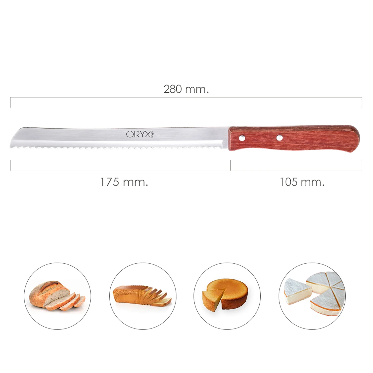 - Artículo también conocido como cuchillos pan, cuchillo cortan pan, cuchillo reposteria
