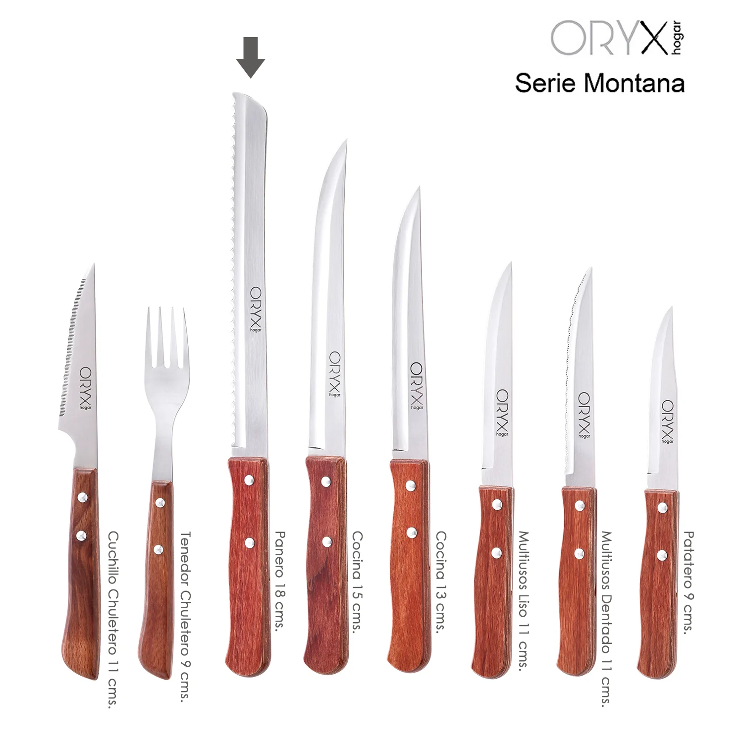- La serie Montana se define por su parecido con maderas naturales, fabricados en acero inoxidable, de hoja estrecha y mango de madera prensada, se trata de un diseño clásico, funcional y resistente, caracteristicas que hacen que su duración sea larga, incluso con usos frecuentes
