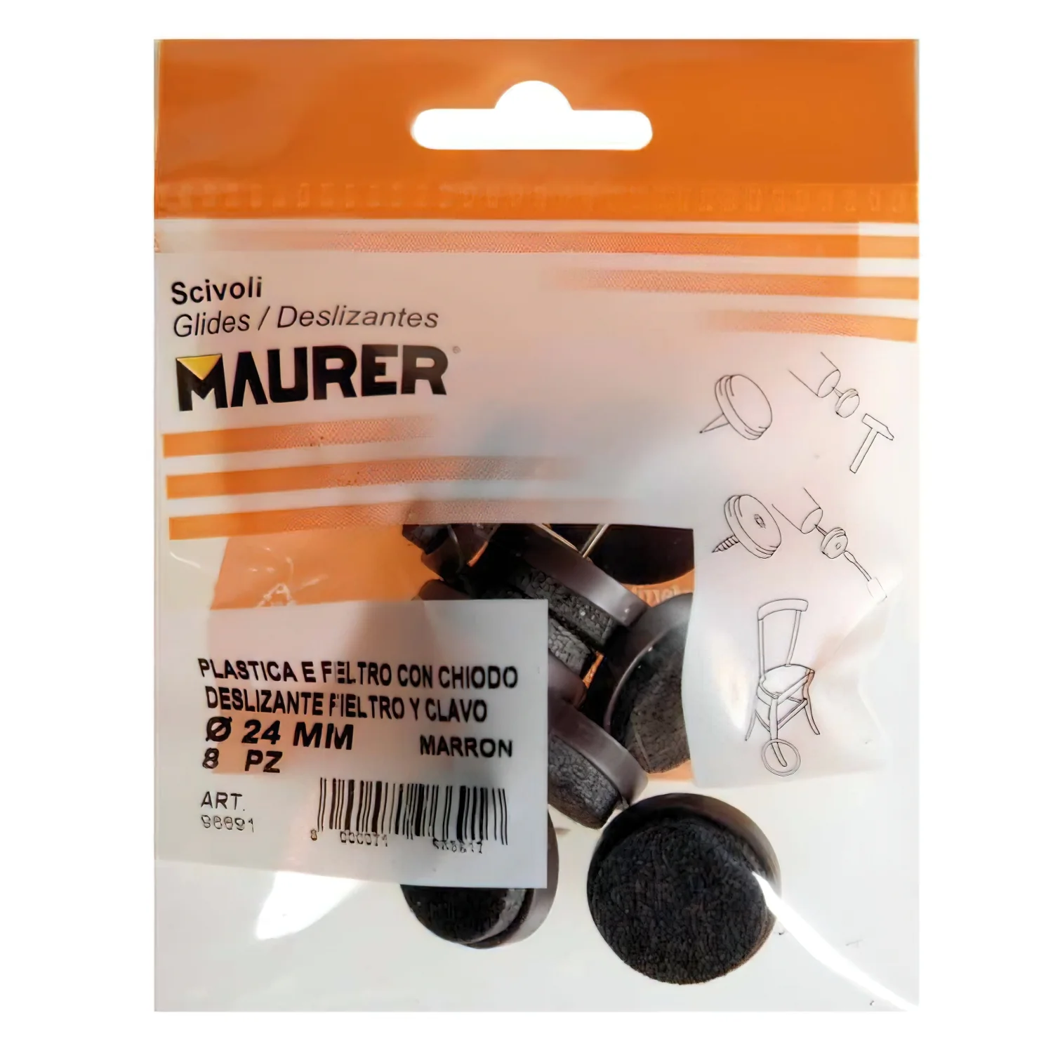 Deslizante Marron Con Fieltro Ø24 (Blister 8 Unidades)