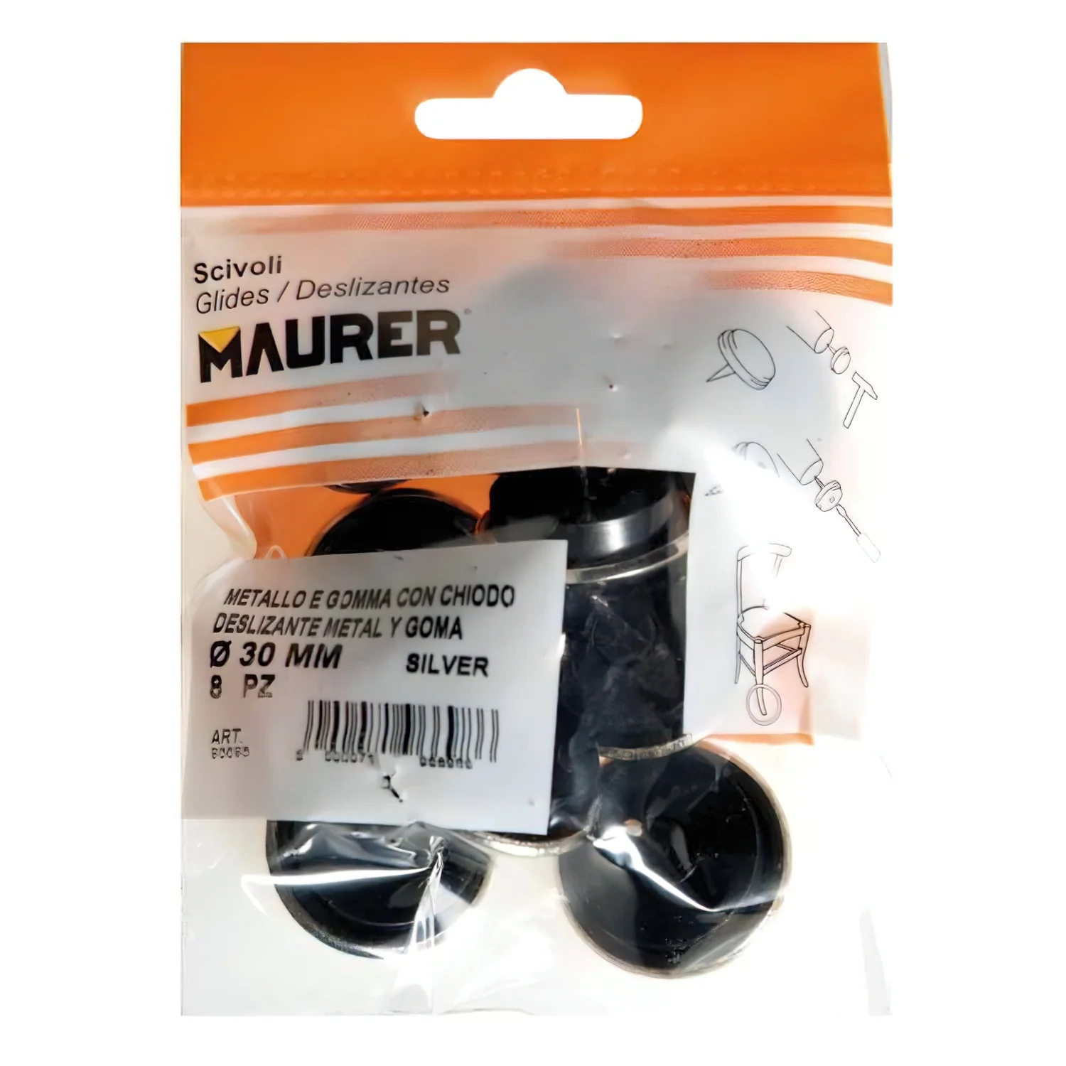 Deslizante Metal Goma Claro Ø30 (Blister 8 Unidades)