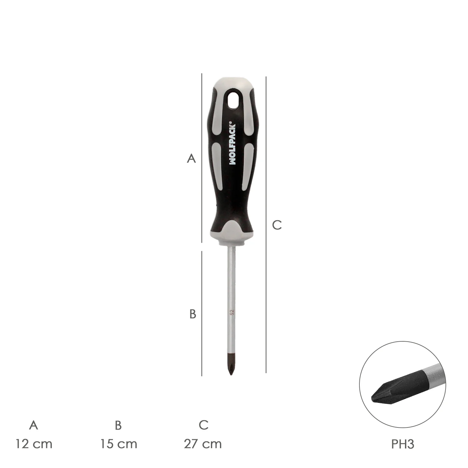 Destornillador Phillips S2 DIN5262 de la marca WOLFPACK LINEA PROFESIONAL.