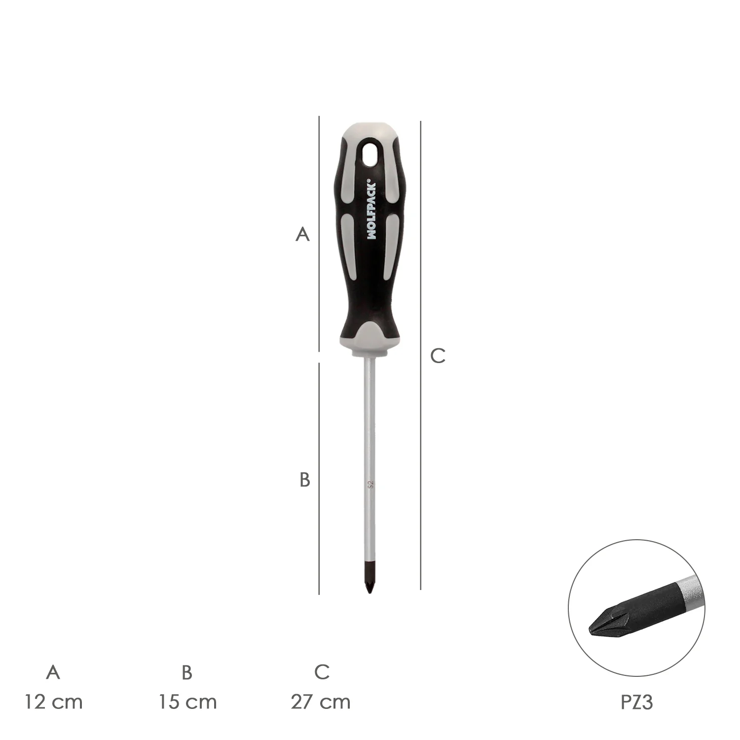 Destornillador Pozidriv S2 DIN5262 de la marca WOLFPACK LINEA PROFESIONAL.