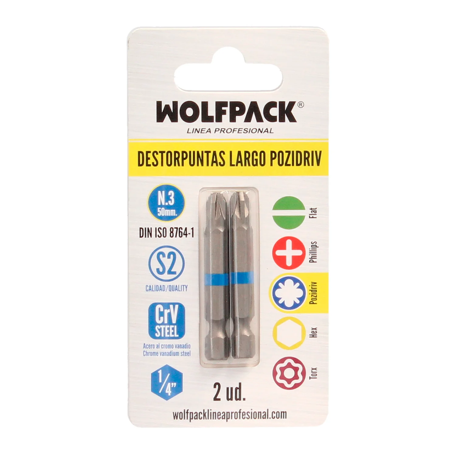 Puntas Largas Destornillador Pozidriv de la marca WOLFPACK LINEA PROFESIONAL.