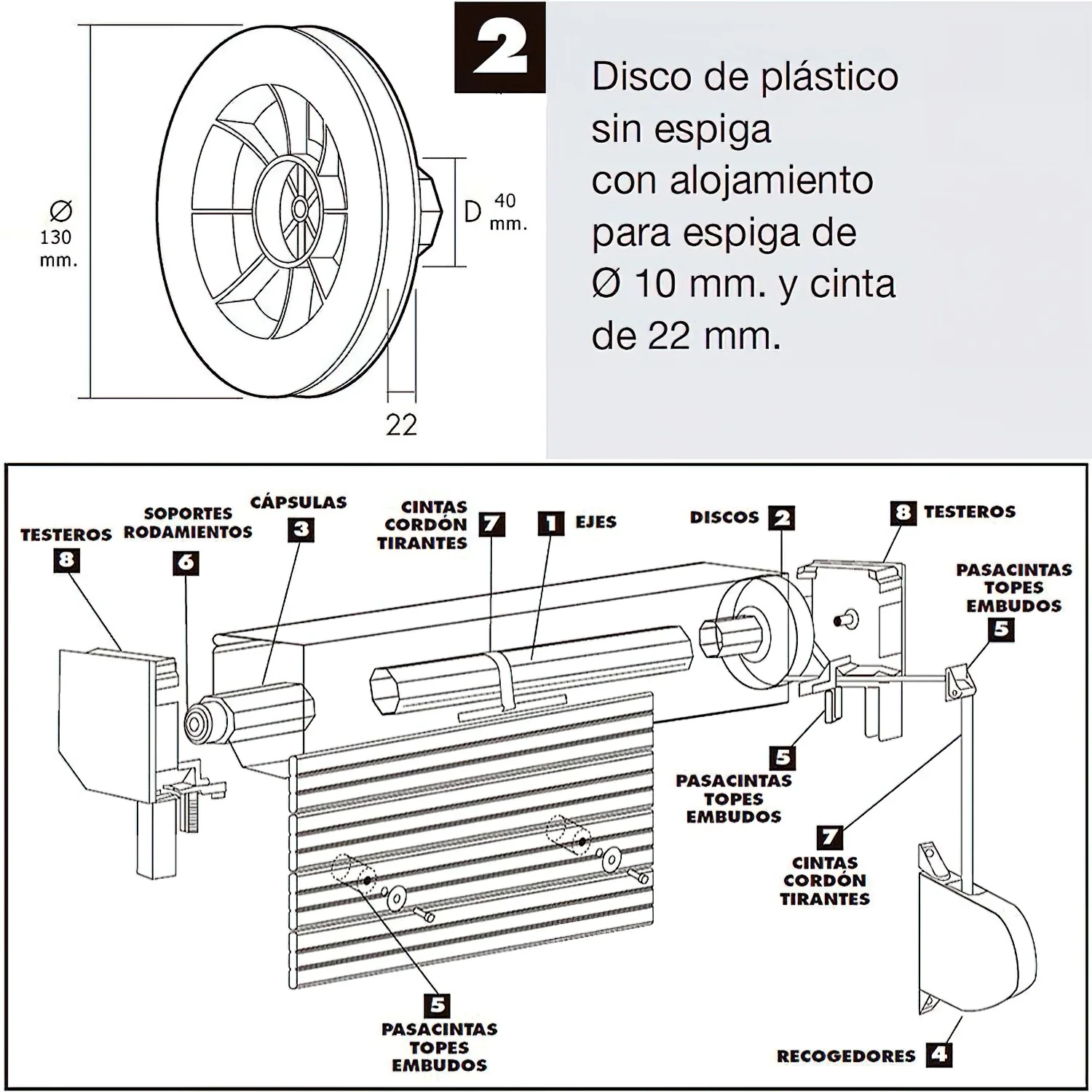 Disco Persiana Plastico Octogonal 130×40 mm. Cinta 22 mm.
