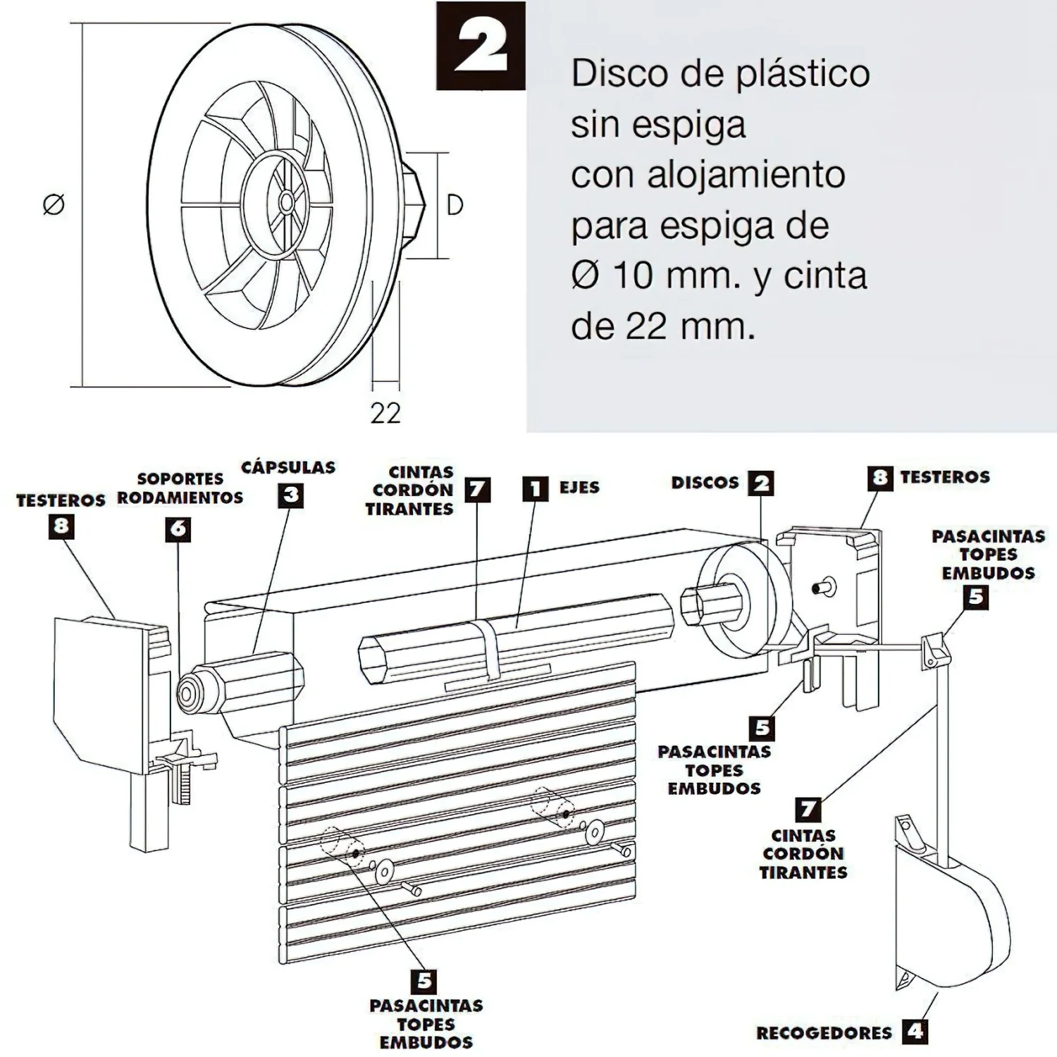 Disco Persiana Plastico Octogonal 160×60 mm. Cinta 22 mm.