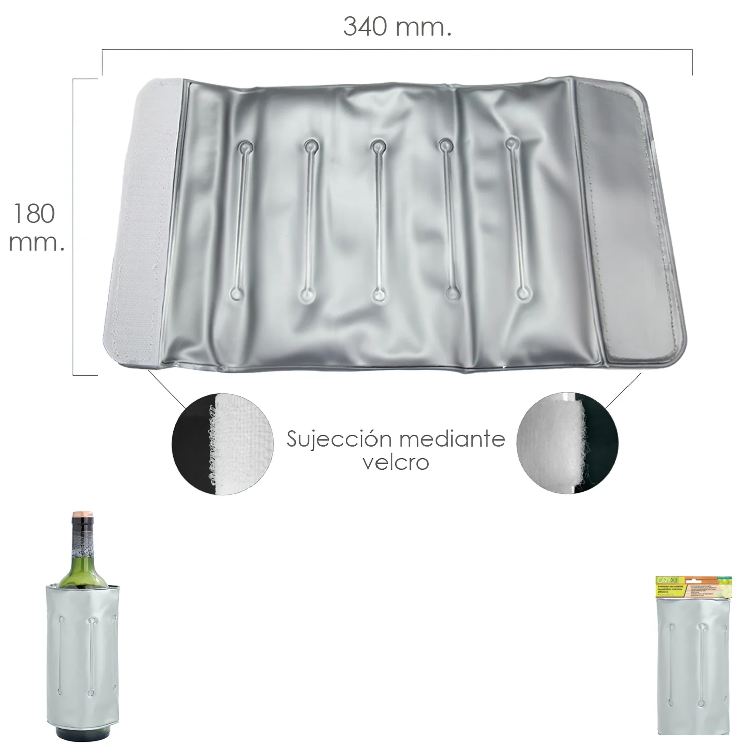 - Funda flexible para congelar. Envuelve la botella para enfriarla y o mantenerla fría durante más tiempo
