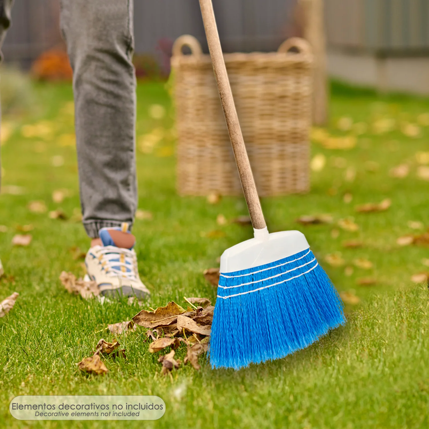 Escoba Jardin Azul Con Cordones Sin Mango, Escoba Terrazas, Terrazas, Cocheras, Calles,