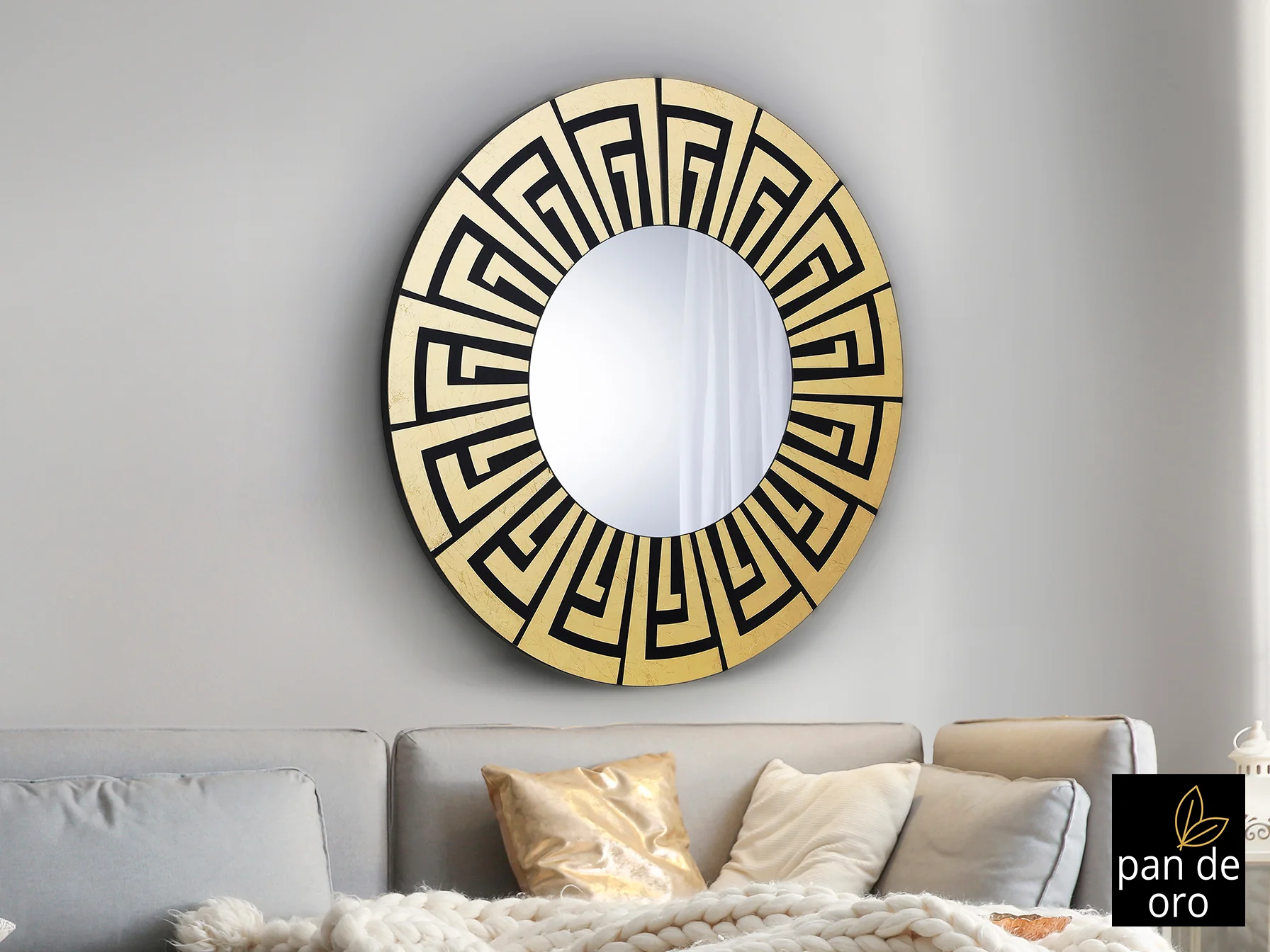 - Espejo AQUILES- ESPEJO PAN DE ORO-NEGRO D90