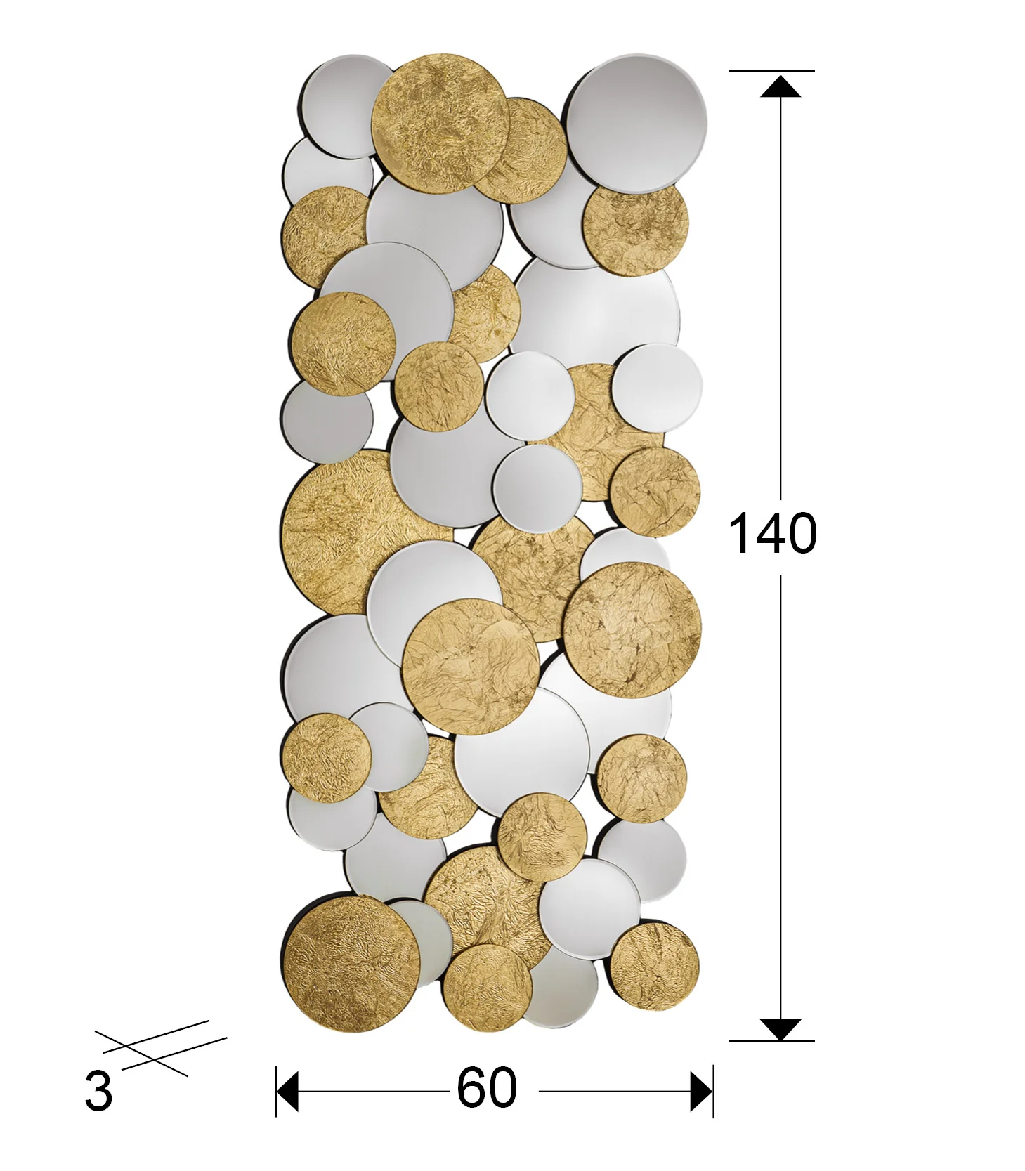 | Acabado | Espejo plata, pan oro, negro |