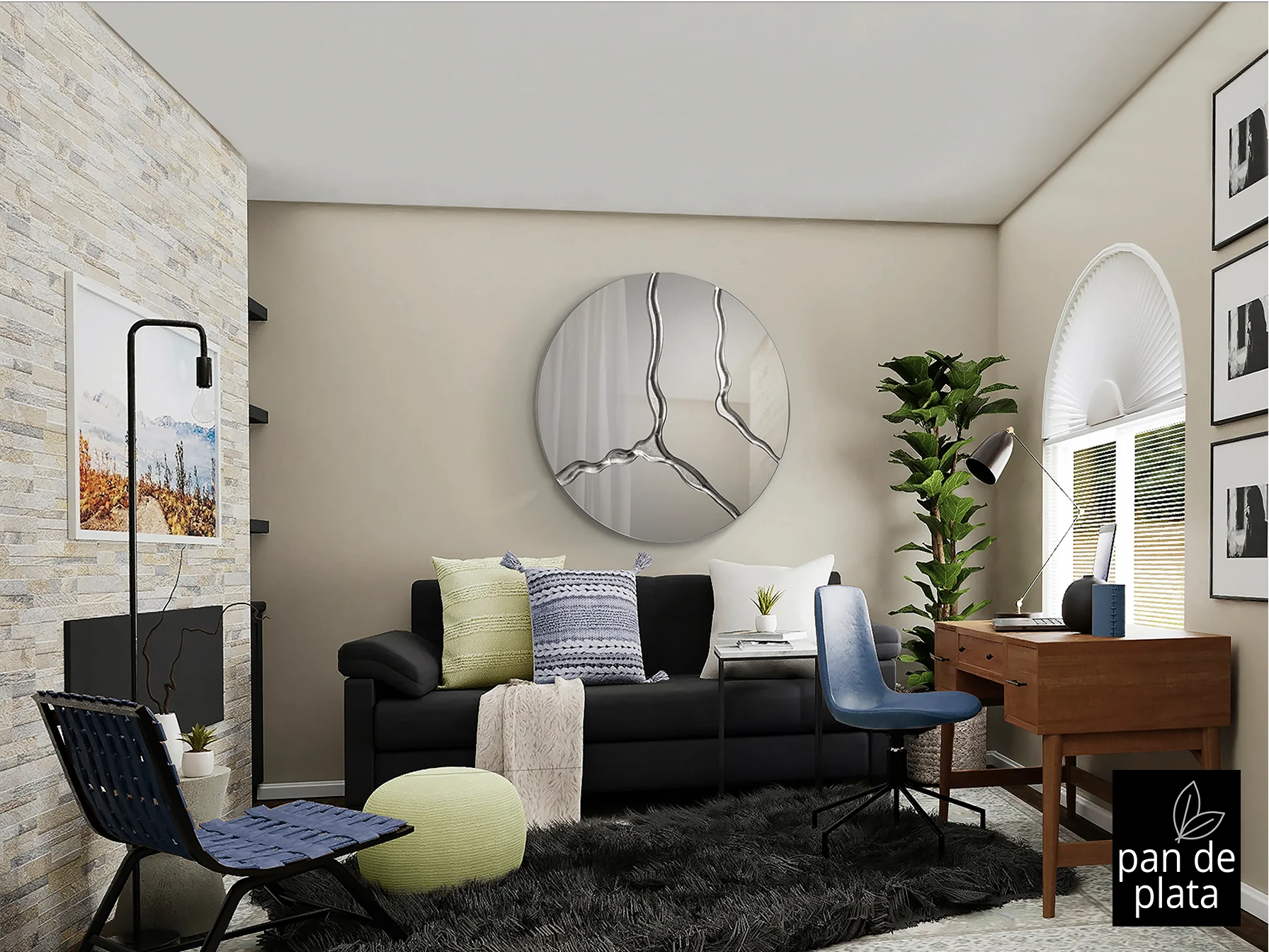 El espejo Surcos destaca por su cuidada fabricación con materiales de alta calidad. El cristal ofrece una imagen nítida y clara, mientras que la base de DM con acabado en pan de plata garantiza durabilidad y resistencia. Su diseño redondo y la hendidura decorativa lo convierten en una pieza única que aporta un toque de distinción a cualquier ambiente.