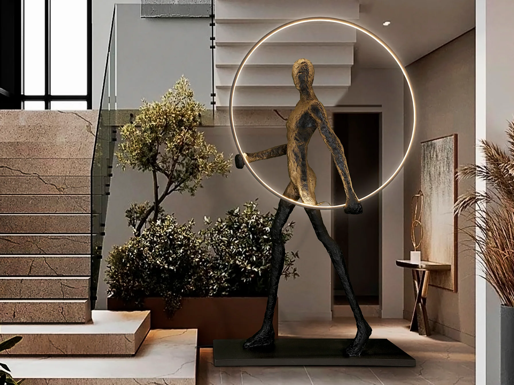 Descubre la imponente Figura Caminante – Gran Figura 1L Negro, una obra maestra de diseño y funcionalidad de la prestigiosa marca Schuller. Esta pieza excepcional, disponible en luzguru.com, transforma cualquier espacio con su elegancia y estilo inconfundibles. Fabricada con materiales de alta calidad, fibra de vidrio y resina de poliéster, esta figura presenta un acabado negro mate que irradia sofisticación. Su diseño innovador integra un aro de metal con una luz LED de 4.60 W, proporcionando 515 lm de flujo luminoso a 3000 k, creando una atmósfera cálida y acogedora. La marca Schuller es sinónimo de calidad, diseño y durabilidad, y esta figura no es la excepción. Su presencia majestuosa y sus detalles meticulosos la convierten en una pieza única que eleva la estética de cualquier ambiente. Con sus dimensiones de 132 cm de ancho, 218 cm de alto y 40 cm de profundidad, la Figura Caminante se convierte en un punto focal impresionante, capaz de transformar un espacio ordinario en un ambiente extraordinario. Experimenta la excelencia del diseño con Schuller y dale a tu hogar el toque de distinción que merece. Adquiere la tuya hoy mismo en luzguru.com. Schuller, calidad y estilo en cada detalle.